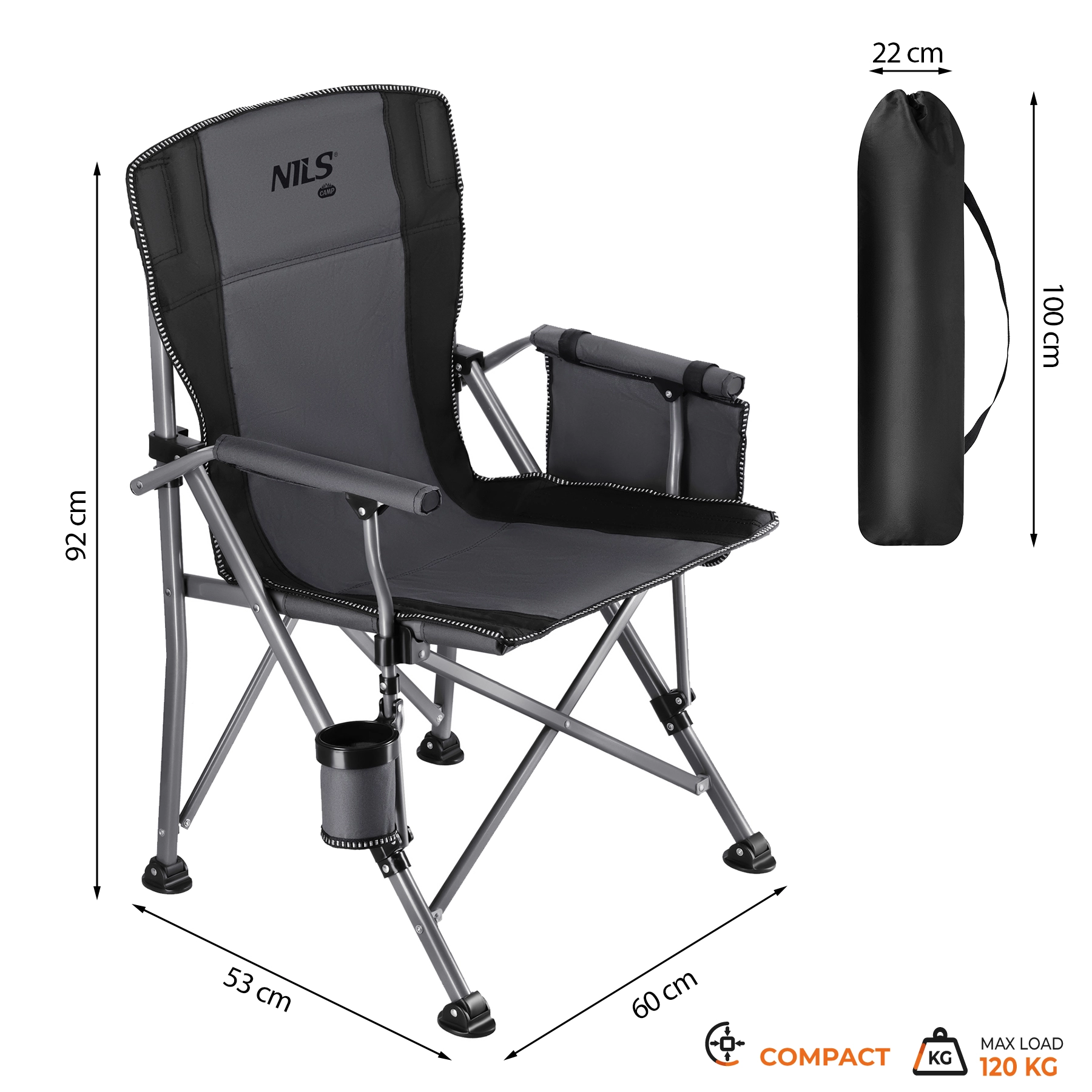 Uživajte v udobju kjerkoli v naravi. Zložljiv kamp stol NILS Camp združuje trpežen poliester 600D Oxford s premazom in stabilno jekleno konstrukcijo s prašnim lakiranjem za dolgo življenjsko dobo. Zaradi nizke teže in kompaktnih mer po zlaganju ga zlahka odnesete k vodi, v kamp ali na vrt.