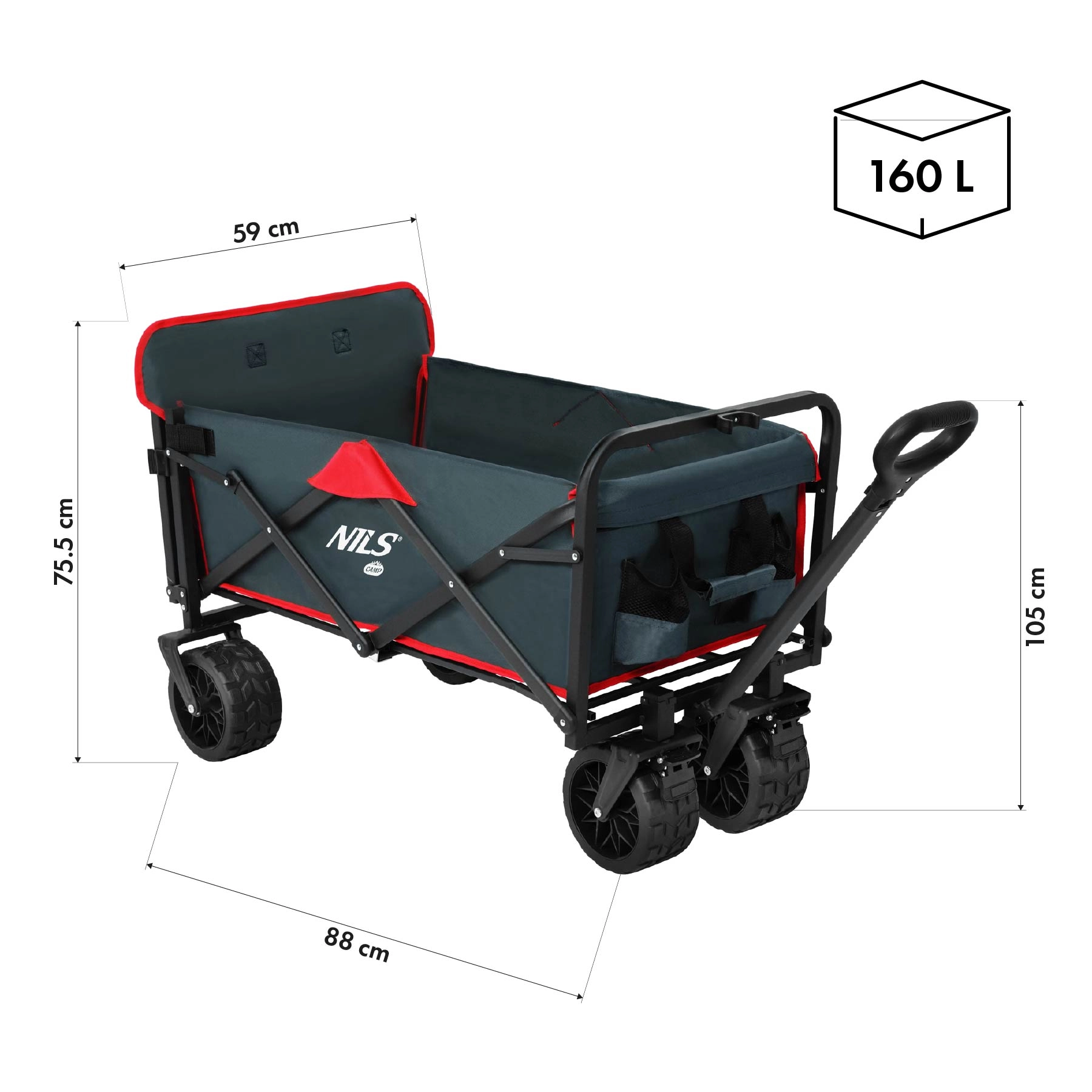 Voziček NILS Camp NC2601 je vsestranski pomočnik na poti, v kampu in na plaži. Stabilna jeklena konstrukcija s prašnim lakiranjem je odporna proti koroziji in obremenitvam, medtem ko korito iz tkanine 600D Oxford prenese zahtevne pogoje. Zaradi prostornine 160 litrov in nosilnosti 100 kg brez težav prepeljete opremo za piknik, šport in vikend oddih.
