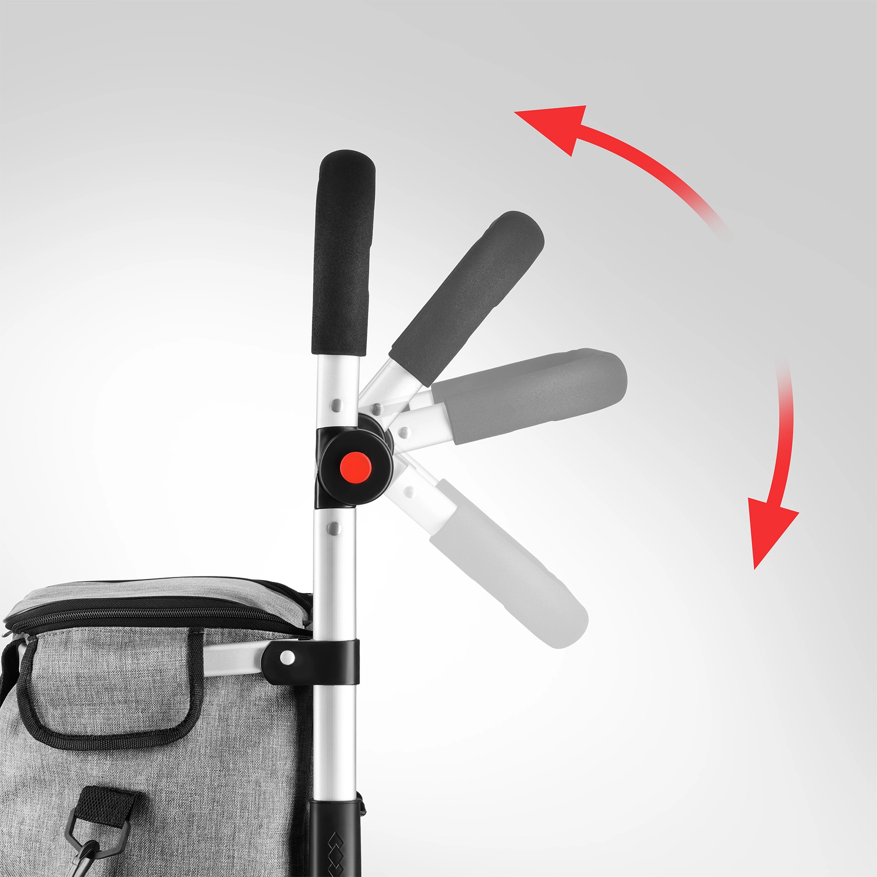 Kolesa s premerom 21 cm in širino 4,3 cm zlahka premagajo tlakovanec in robnike. Teleskopski ročaj s penastim oprijemom je nastavljiv v 3 položajih.