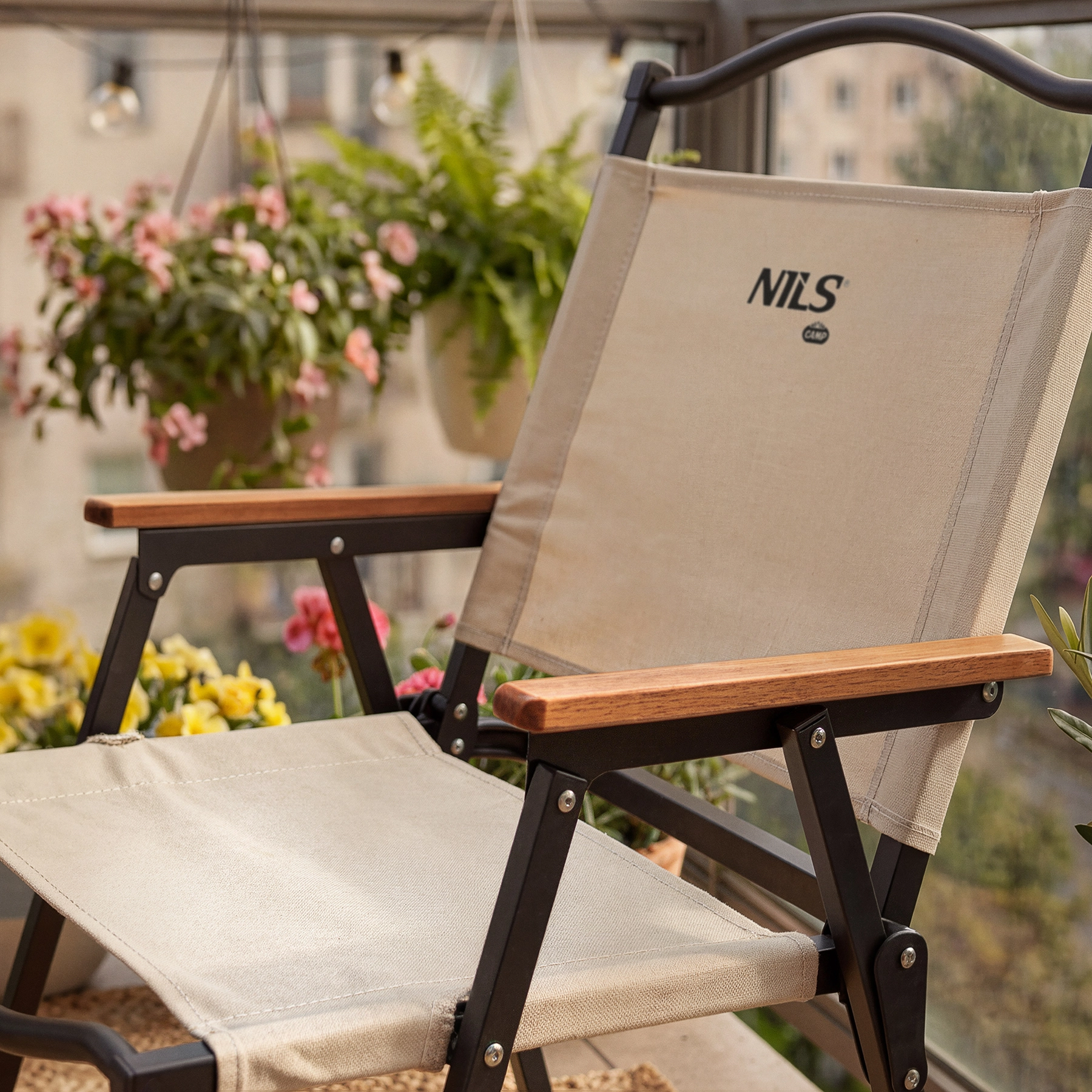 Uživajte v udobju kjerkoli – zložljiv kamp stol NILS Camp združuje stabilnost, stilski dizajn in enostavno prenosljivost. Praškasto lakiran jekleni okvir zagotavlja dolgo življenjsko dobo in eleganten videz, lesena naslonjala za roke pa dodajo naraven pridih in prijeten oprijem.