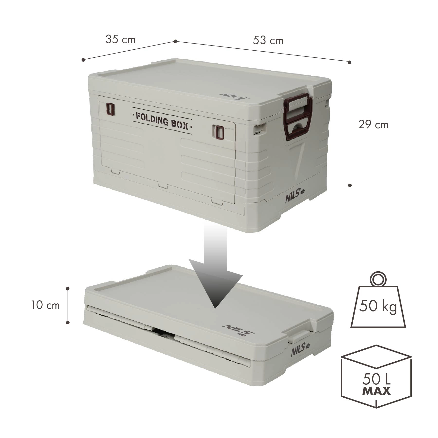 Zložljiv shranjevalni zaboj s pokrovom NILS Camp je idealen za avto, kampiranje, delavnico in gospodinjstvo. Ponuja veliko prostornino 50 l, odporno izvedbo iz PP in hitro zložitev na višino le 10 cm za prihranek prostora. Zahvaljujoč pokrovu na zatrditve in bočnim ročajem je vsebina na varnem, rokovanje pa enostavno.