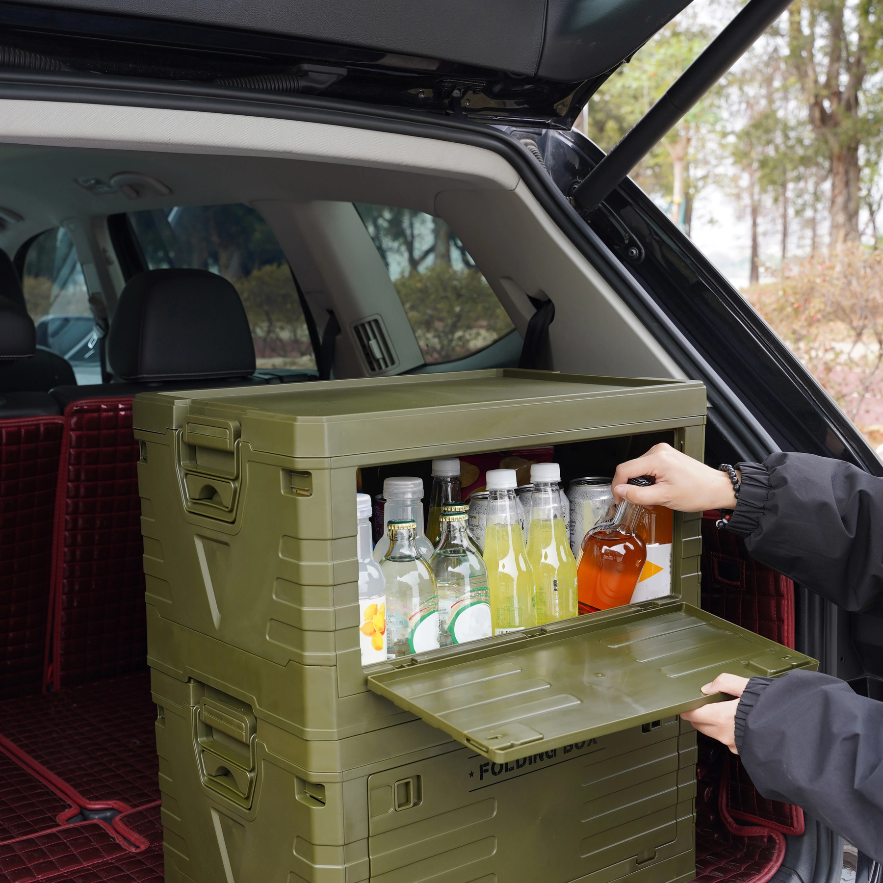 Praktična zasnova omogoča hiter dostop do shranjenih stvari, naj gre za pijačo, živila ali orodje. Odlično za izlete, kampiranje in vsakodnevno uporabo.