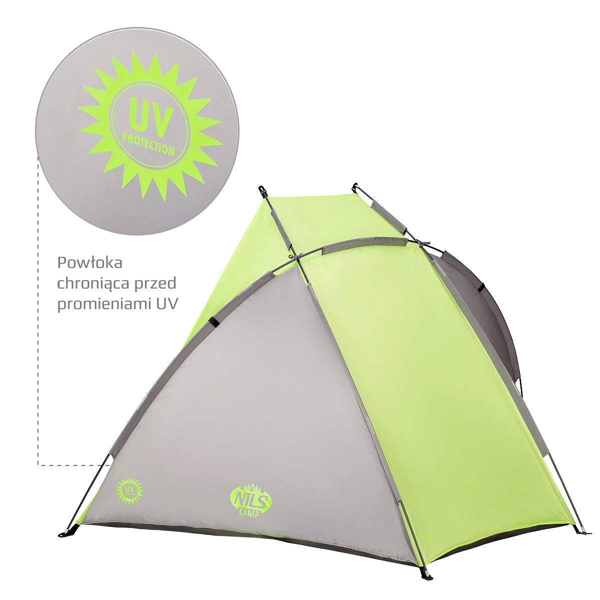 Uživajte v senci in zasebnosti, naj bo to ob morju, na kopališču ali na vrtu. Plažni šotor NILS CAMP nudi učinkovito zaščito pred soncem in škodljivimi žarki, zato je bivanje na soncu prijetno in varno. Material prenese tudi manjše dežne plohe, za zračenje skrbi odprta sprednja konstrukcija.