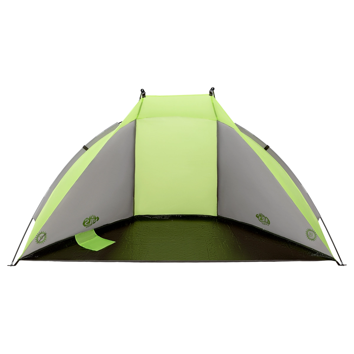Šotor hitro postavite s pomočjo 3 steklolaminatnih palic, napeljanih skozi tunele tropika. V notranjosti sta 2 praktična žepa za malenkosti, v paketu pa prejmete še 4 jeklene kline za pritrditev proti vetru. Po zlaganju se enostavno prenaša v torbi z ročajem.