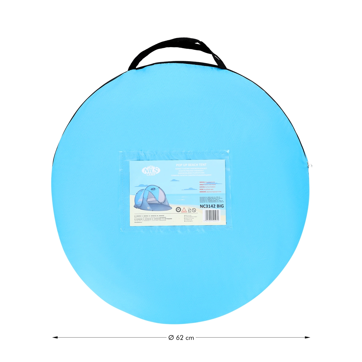 Plažni šotor NILS Camp NC3143 BIG je idealna izbira za dopust ob morju, kopališče ali domači vrt. Po odstranitvi iz embalaže se samodejno razpre, zato v nekaj sekundah dobite zanesljivo zavetje pred soncem in vetrom. Konstrukcija iz laminatne palice in trpežna poliestrska ponjava zagotavljata stabilnost in dolgo življenjsko dobo.