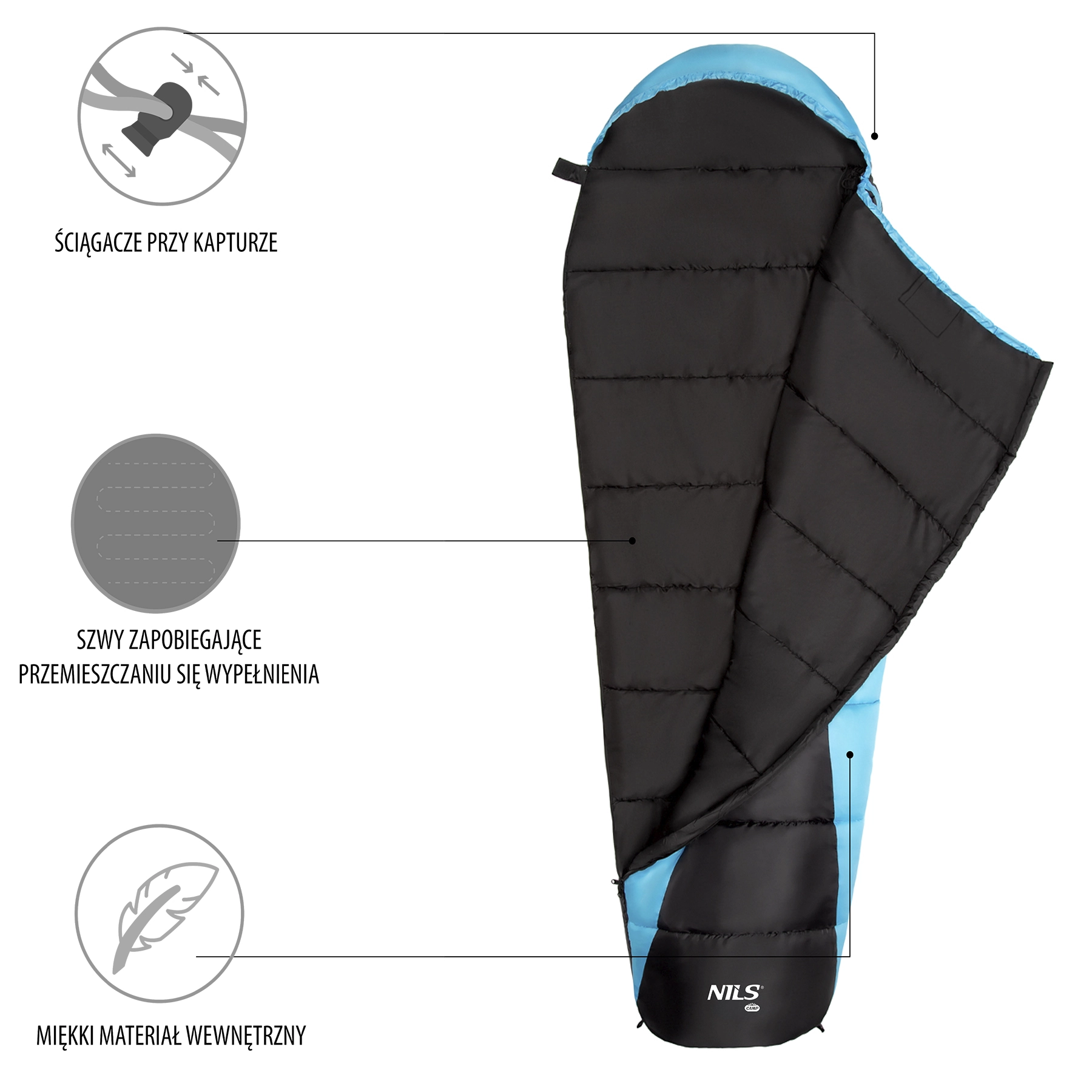 Spalna vreča NILS Camp NC2012 je idealna izbira za kampiranje, postavljanje šotora in prenočevanje na prostem v prehodnem obdobju. Oblika »mumija« učinkovito sledi telesu in zmanjšuje prostornino, ki jo je treba ogrevati, kar prinaša boljše toplotno udobje in nižjo težo kot pri odejastih spalnih vrečah.