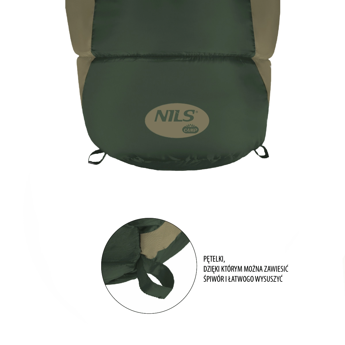 Lahka in topla mumijska spalna vreča NILS Camp je idealna za kampiranje in prenočevanje v hladnejših razmerah. Zaradi mumijske oblike in kapuce z zatezanjem odlično zadržuje toploto, medtem ko kakovostni materiali 190T in polnilo iz votlih vlaken 300 g/m2 zagotavljajo učinkovito toplotno izolacijo, nižjo maso in kompaktne mere po zlaganju. Dvosmerna zadrga z letvijo in ježkom povečuje udobje in zaščito pred uhajanjem toplote.