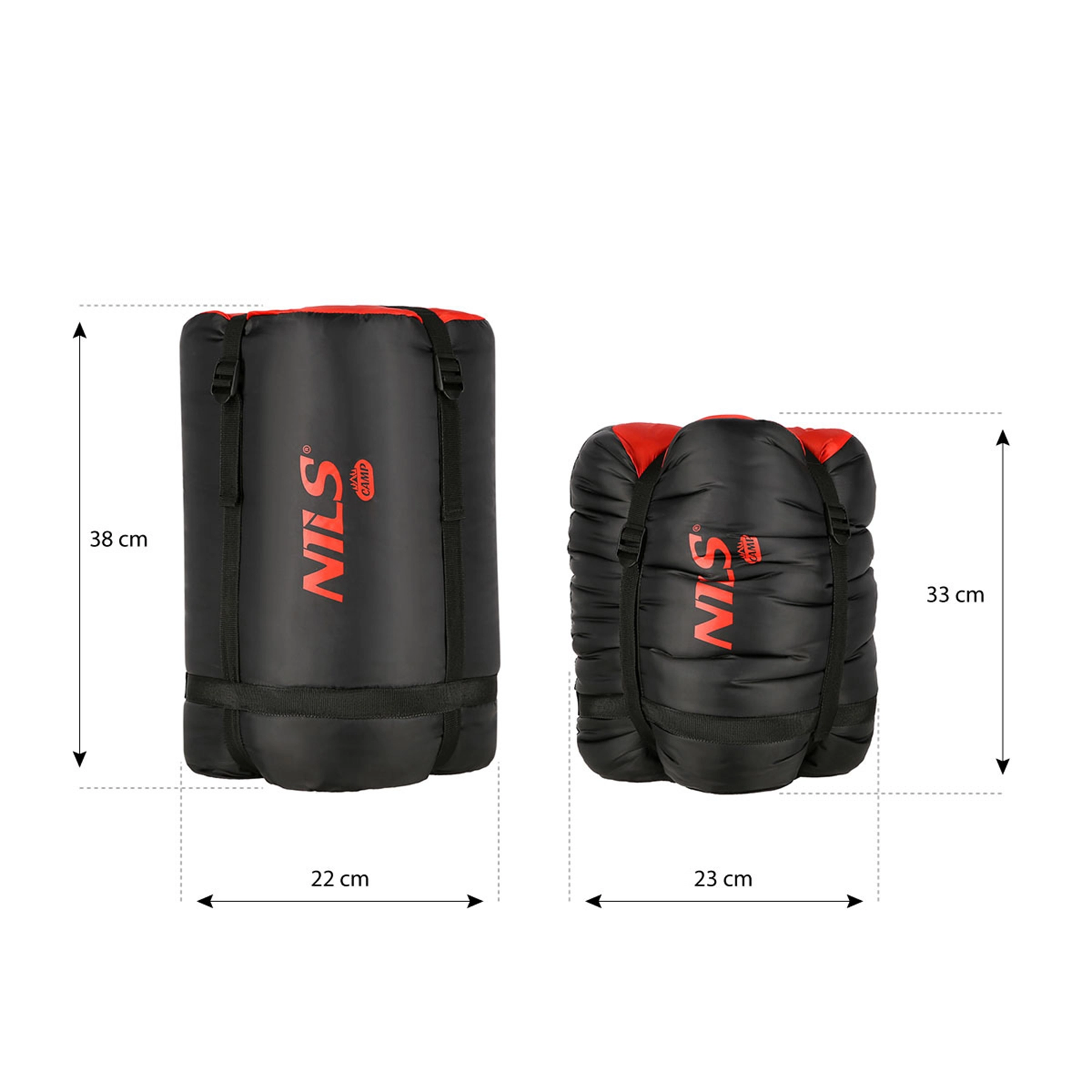 Priložena je praktična kompresijska vreča s trakovi, ki zmanjša volumen približno za tretjino za lažje prenašanje.