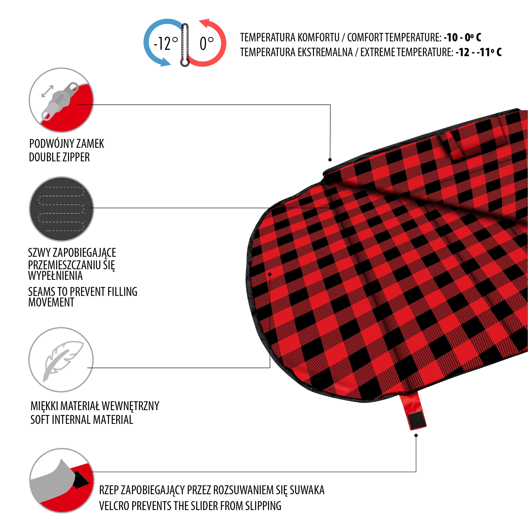 V paketu je kompresijska vreča s trakovi, ki zmanjša volumen približno za tretjino za lažji transport. Udobna temperatura 0 °C in ekstrem -12 °C naredita ta model zanesljivega sopotnika v hladnejših razmerah.