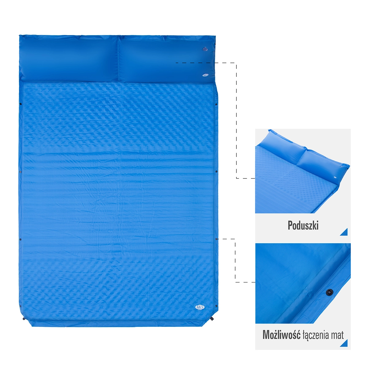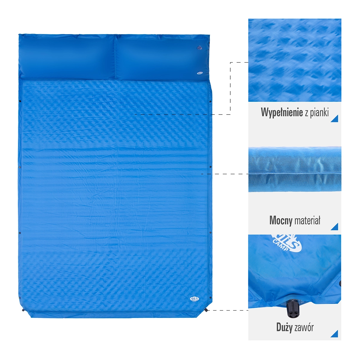 Samonapenjalna podloga NILS CAMP NC4060 je zasnovana za maksimalno udobje dveh oseb. Zahvaljujoč samodejnemu polnjenju z zrakom po odprtju ventila ni potrebe po črpalki, v nekaj trenutkih pa dobite stabilno in prijetno ležalno površino. Širina 130 cm nudi udoben prostor za pare in posameznike, ki imajo raje več prostora.