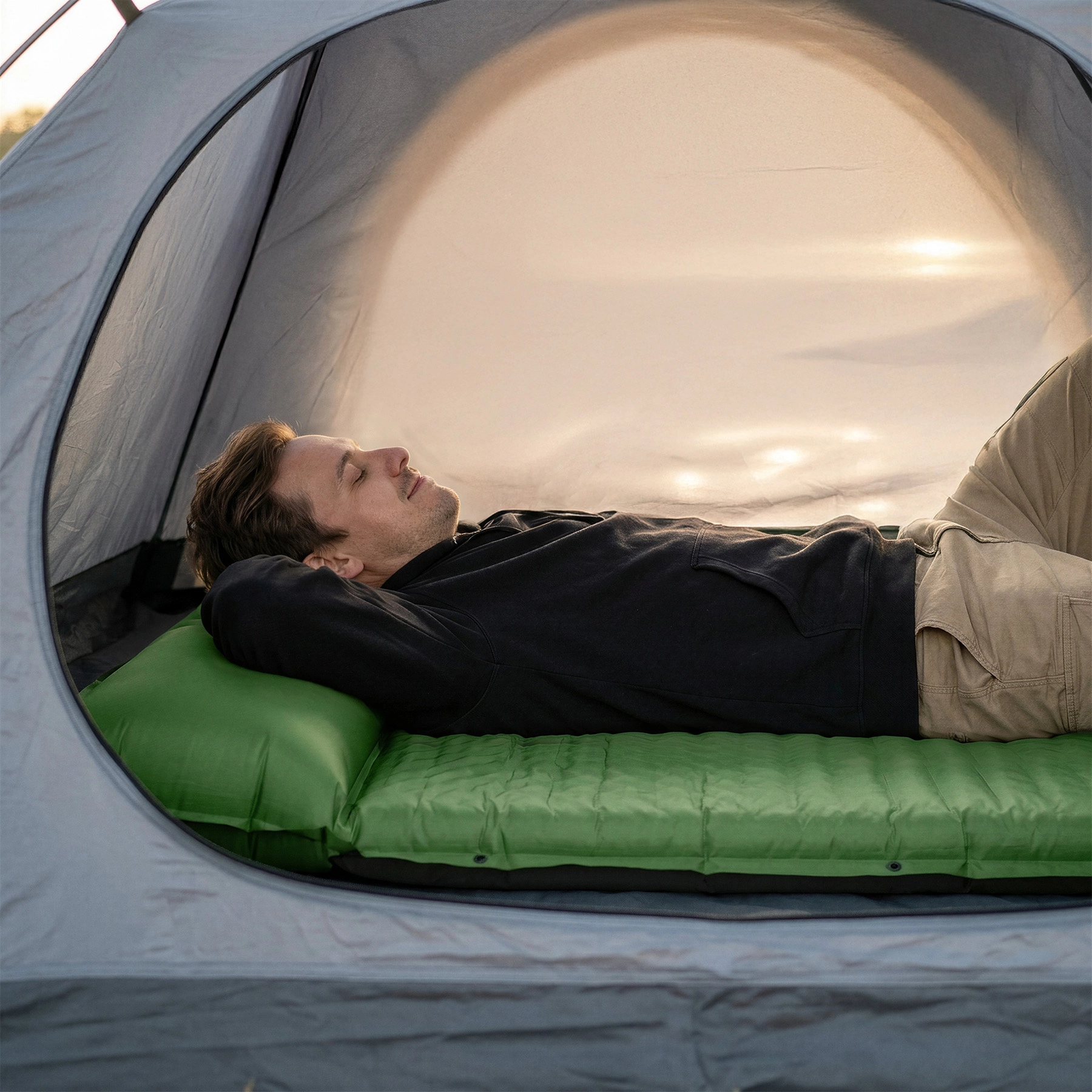 Uživajte v udobju v dvoje kjerkoli na poti. Ta prostorna samonapihljiva blazina se po odprtju ventila sama napolni z zrakom in je v trenutku pripravljena za uporabo. Zaradi širine 130 cm nudi dovolj prostora parom in družinam, medtem ko vgrajen vzglavnik poveča udobje brez potrebe po dodatni opremi.