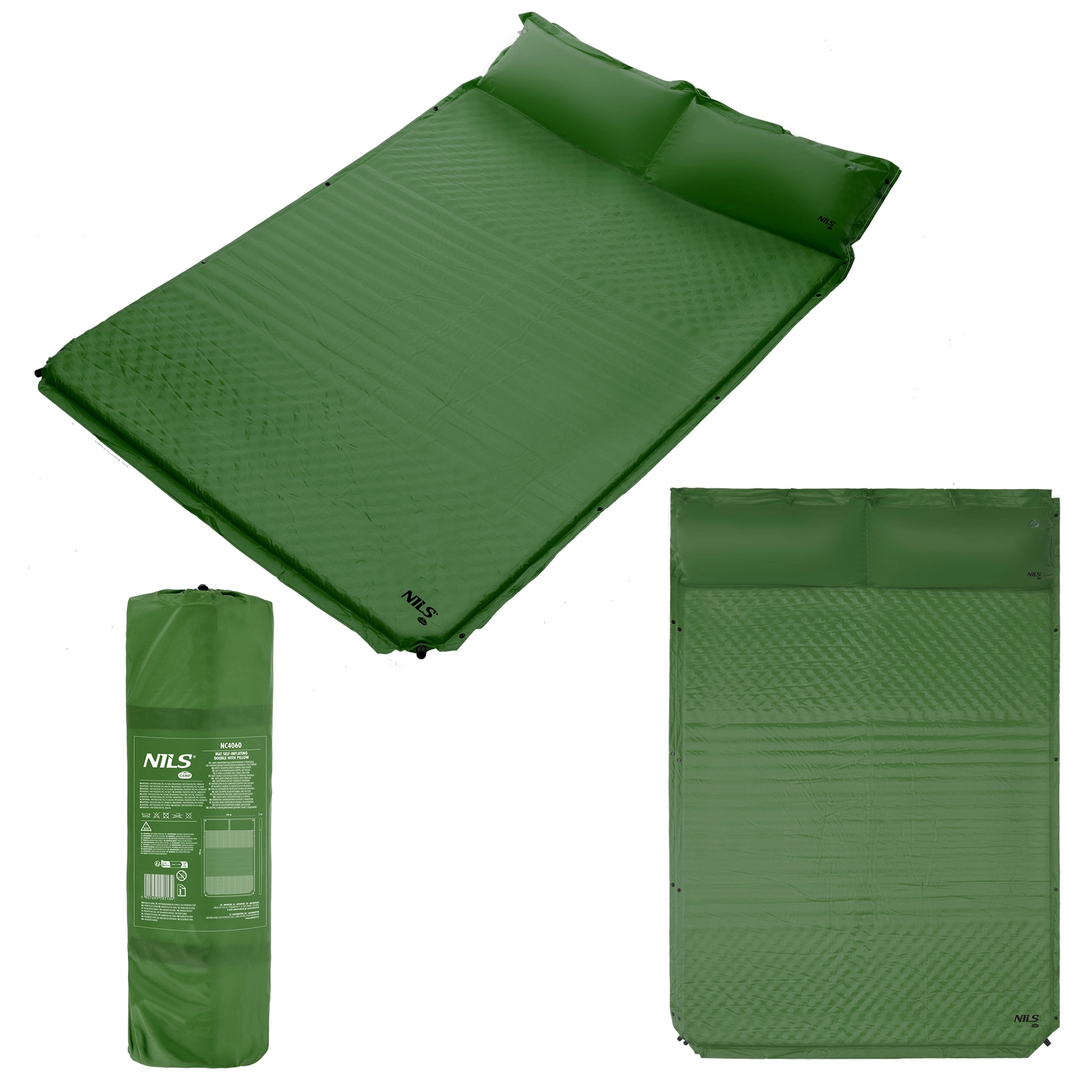 Široka samonapihljiva blazina za dve osebi znamke NILS CAMP ponuja udobno spanje na izletih, v šotoru ali na plaži. Zahvaljujoč samonapihljivemu sistemu, širini 130 cm in integriranemu vzglavniku zagotavlja brezskrbno udobje. Z lahkoto se zloži s pomočjo pritrdilnih trakov, ima kompaktne dimenzije po zlaganju in je izdelana iz trpežnih materialov. Priložena sta transportna torba in komplet za popravilo.
