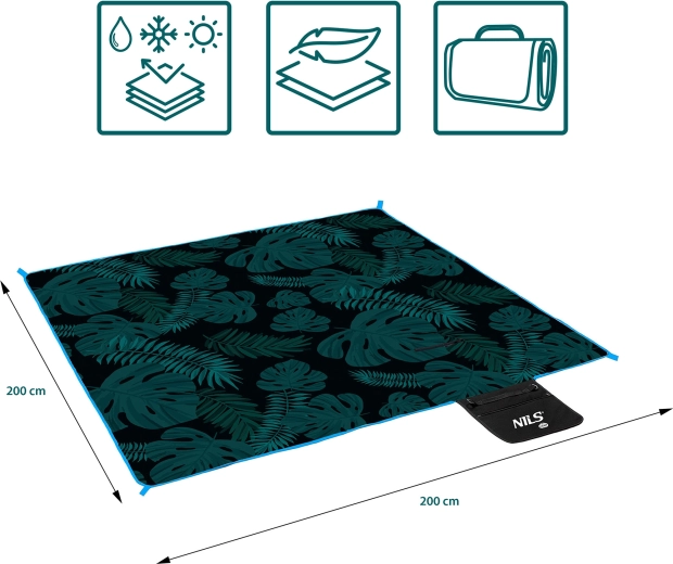 Uživajte sproščene trenutke v naravi s piknik odejo NILS Camp Leaves v dimenzijah 200 × 200 cm. Trislojna zasnova z izolacijsko spodnjo folijo ščiti pred mrazom in vlago, medtem ko mehki flis zagotavlja udobno sedenje. Praktičen žep na zadrgo, očesca za pritrjevanje in prenosen trak naredijo to odejo idealno spremljevalko za piknik, plažo in vrt.