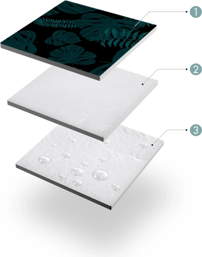 - Trislojna izolacija – flis, 2 mm pena, PE folija z alu nanosom.