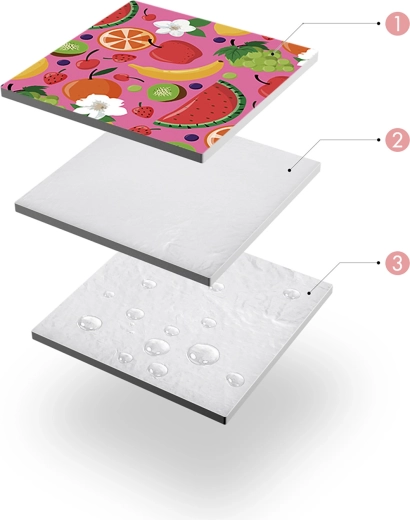 Zgornji flis za mehko sedenje, 2 mm pena za udobje in spodnji PE z aluminijem za zaščito pred mrazom in vlago – idealno tudi za hladnejše ali vlažne podlage.