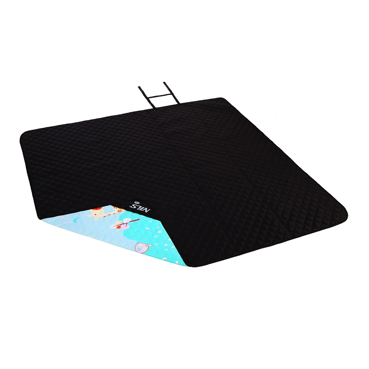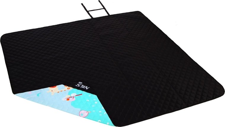 Radodarne mere 200 × 195 cm nudijo udoben prostor za vso družino. Po zložitvi (pribl. 43 × 31 × 12 cm) se prilega v voziček, avto ali nahrbtnik. Zahvaljujoč trpežnemu robnemu šivu in prešitju je pripravljena za vsakodnevno uporabo pri piknikih, na plaži, festivalih in kot podloga v šotoru.