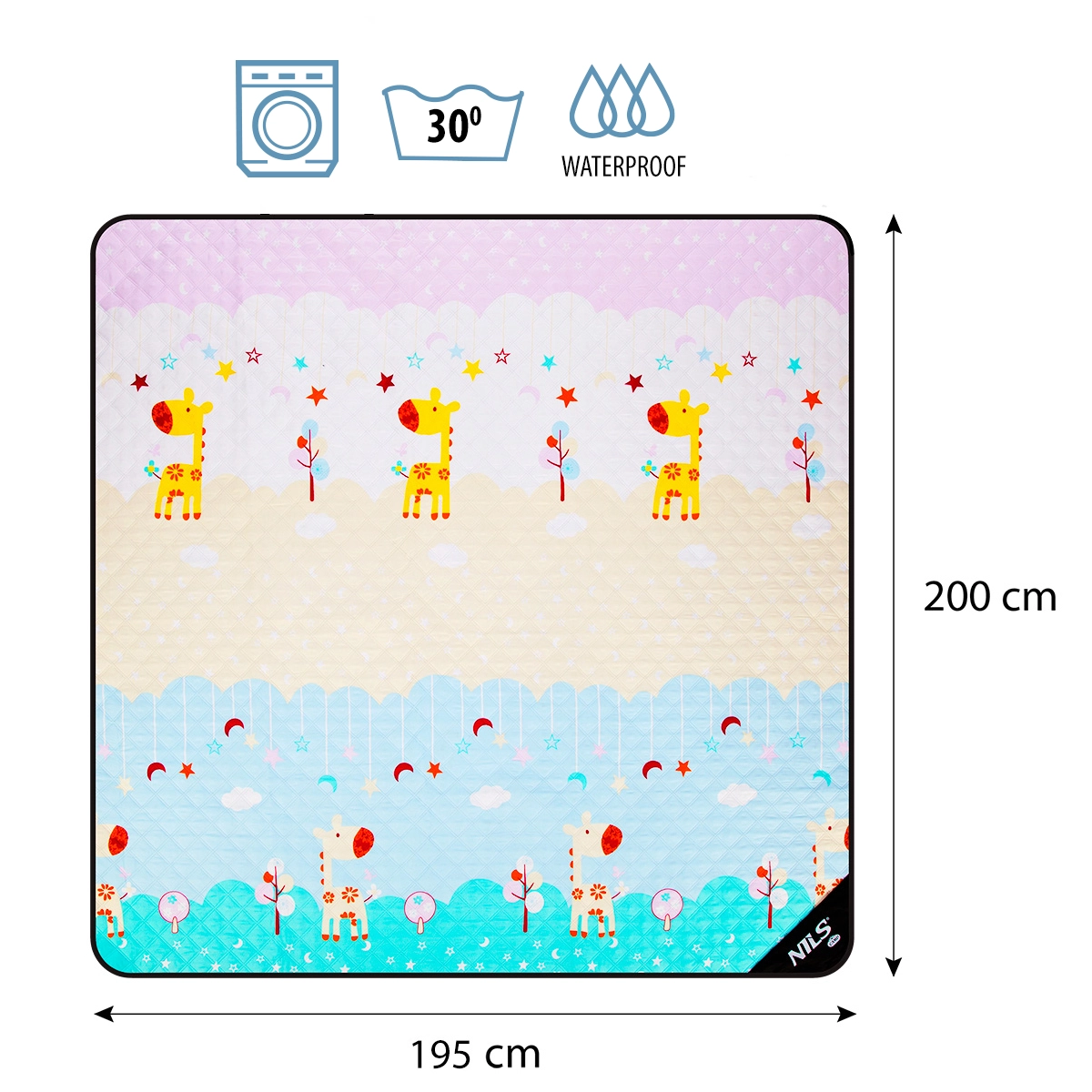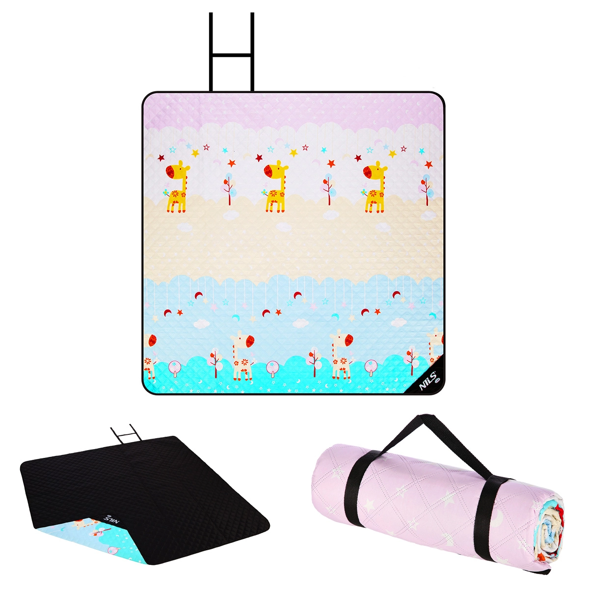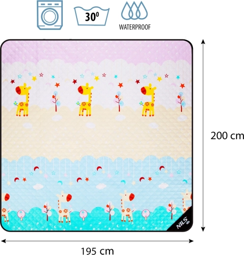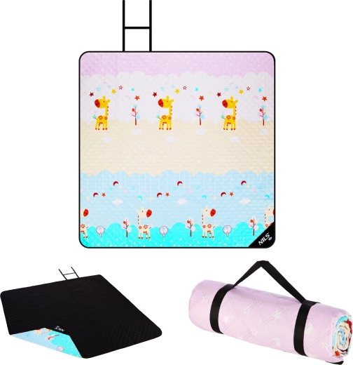 Piknik odeja NILS Camp je idealen spremljevalec za družinske izlete, počitek v parku in sprostitev ob vodi. Zgornja stran iz prijetnega poliestra navduši z igrivim potiskom z žirafo, medtem ko je spodnja plast iz tkanine Oxford s PVC prevleko vodoodporna in pomaga izolirati od vlažne trave in hladne podlage. Odeja je lahka, enostavna za vzdrževanje, po zlaganju pa nastane kompakten paket s praktičnim ročajem za prenašanje.