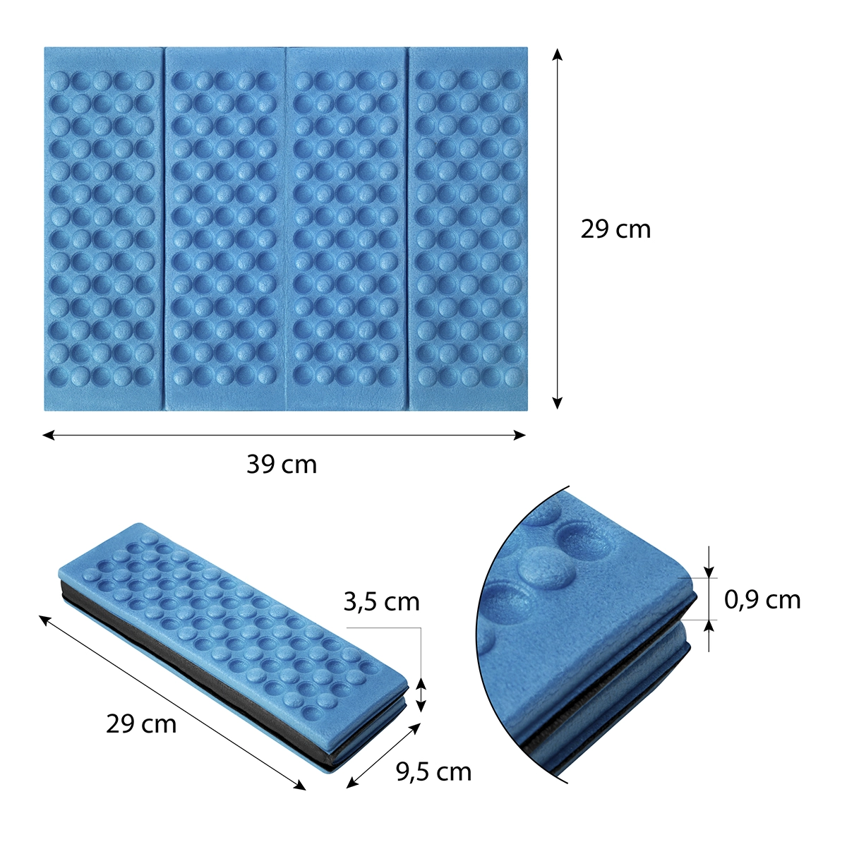 Ta zložljiv penast sedež je zanesljiv sopotnik za kampiranje, pohodništvo, ribolov in festivale. Material XPE zagotavlja nizko težo, visoko vzdržljivost in odlično izolacijo pred mrazom in vlago. Zaradi členjene površine je sedenje udobno tudi na neravnem terenu.