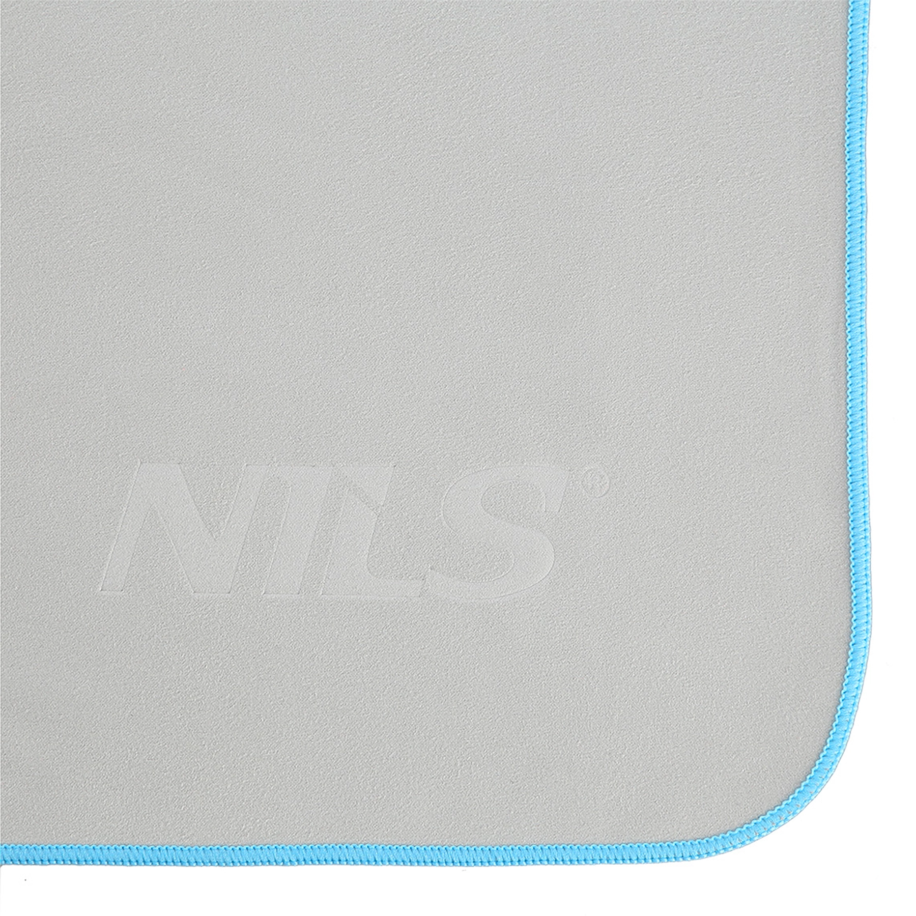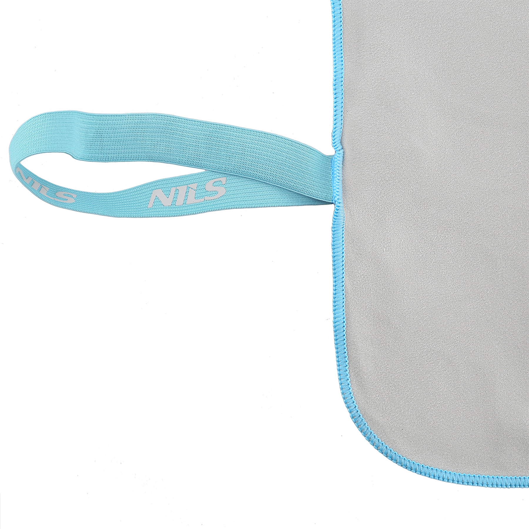 Po zvijanju brisačo fiksirate s trakom z logotipom NILS. Prihrani prostor v nahrbtniku in ostane lepo zložena.