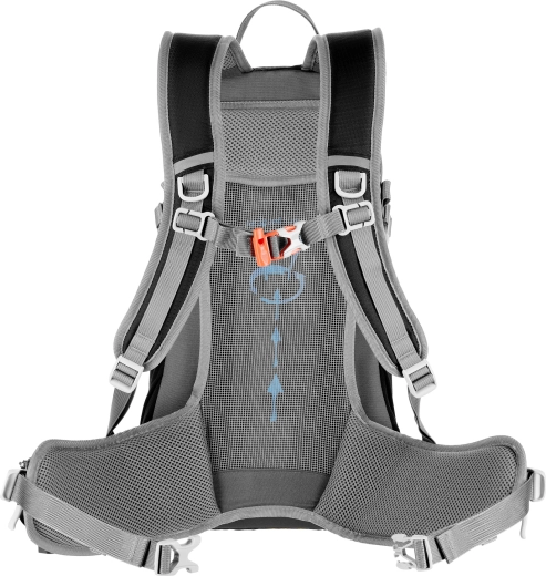 Udobne naramnice, prsni pas s piščalko in oblazinjen ledveni pas z žepi ohranjajo nahrbtnik stabilen tudi v zahtevnem terenu.