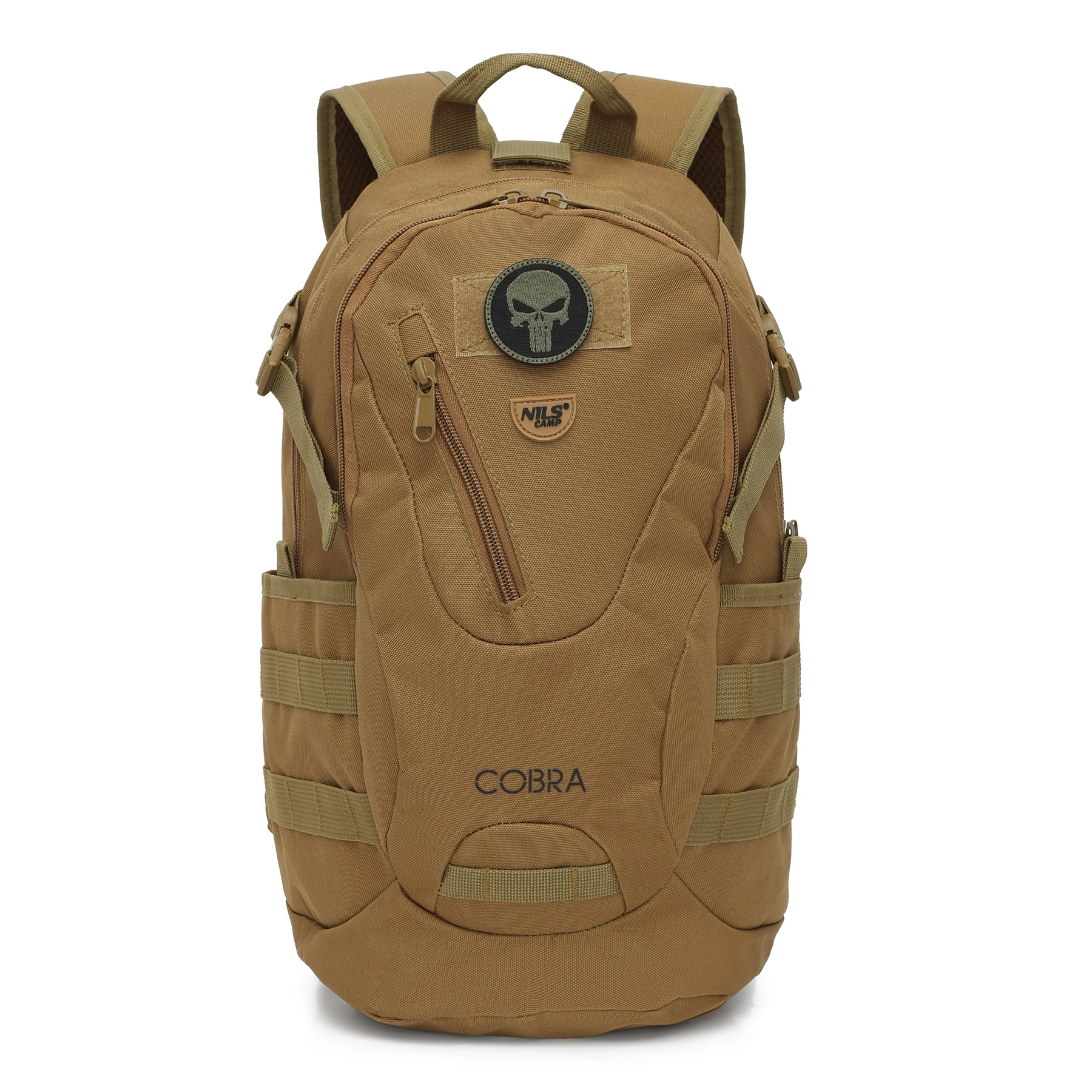 Iščete zanesljiv in lahek nahrbtnik za vsakodnevno uporabo in dejavnosti na prostem? NILS Camp Cobra 25 l združuje moderen taktični videz s praktičnimi elementi za udobno uporabo v mestu, na kolesu in na izletih. Trpežna konstrukcija iz 100 % poliestra s PVC premazom ščiti pred obrabo in vlago, medtem ko notranja podloga 210D dodatno ojača celoten nahrbtnik in varuje vsebino.
