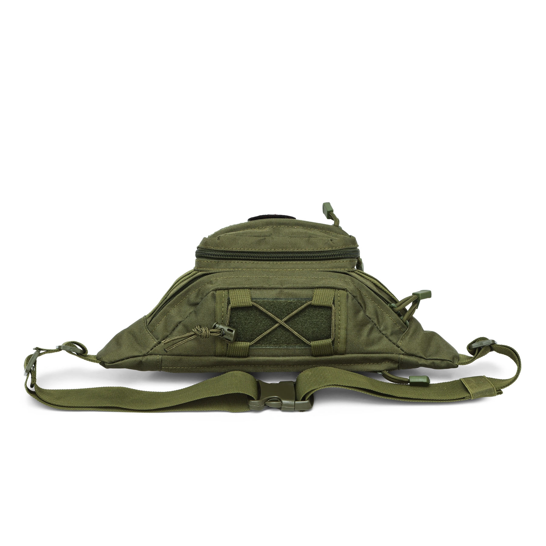 - MOLLE‑slog pritrjevanja, panel s sprijemalnim trakom za našitke