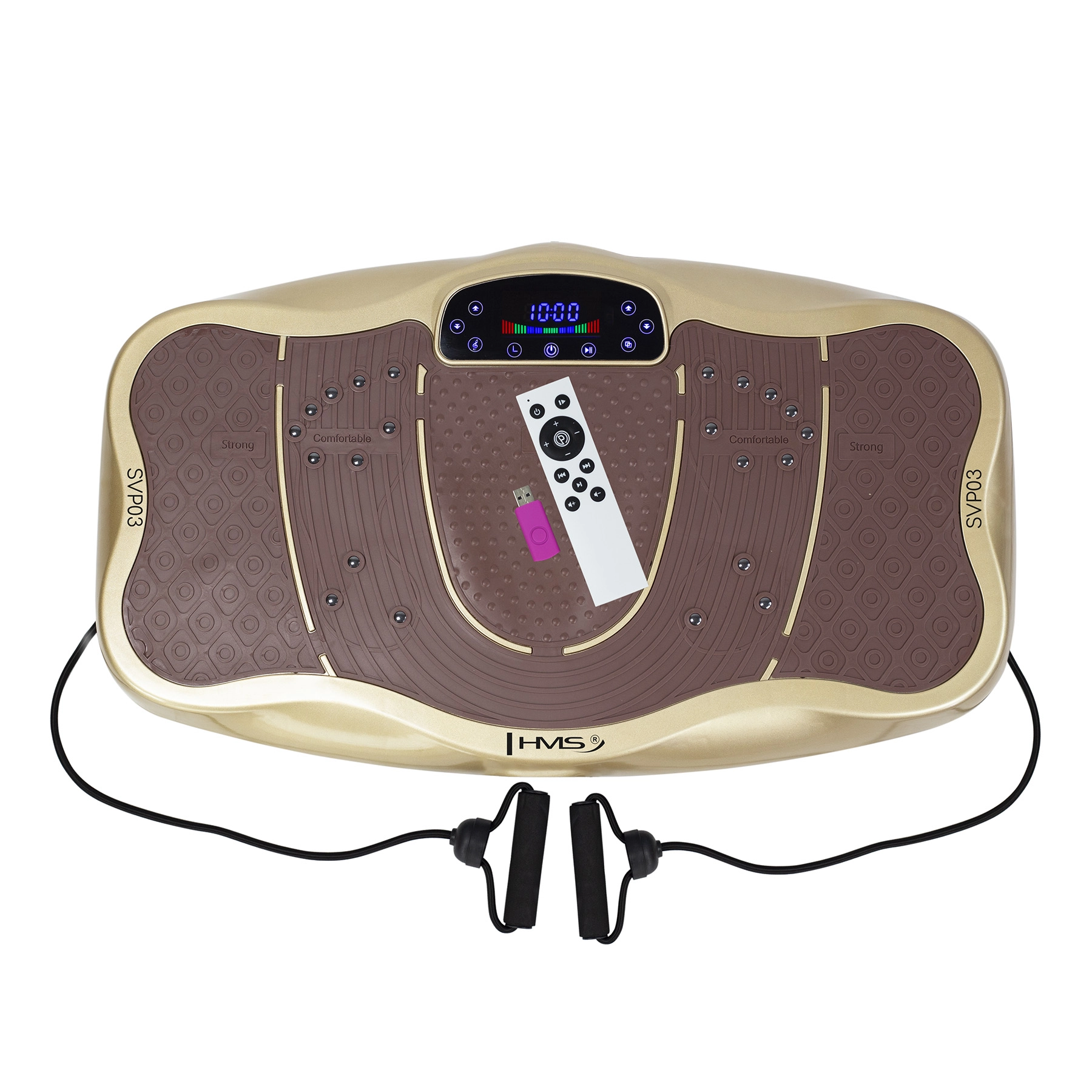 HMS SVP03 je vsestranska vibracijska platforma, zasnovana za učinkovito krepitev nog, zadnjice, trebuha in zgornjega dela telesa. Tri ravni intenzivnosti simulirajo hojo, tek in sprint glede na širino stoje, medtem ko 99 hitrosti in časovnik omogočata natančno nastavitev treninga. Zahvaljujoč vgrajenim magnetom plošča dodatno spodbuja krvni obtok in podpira regeneracijo.