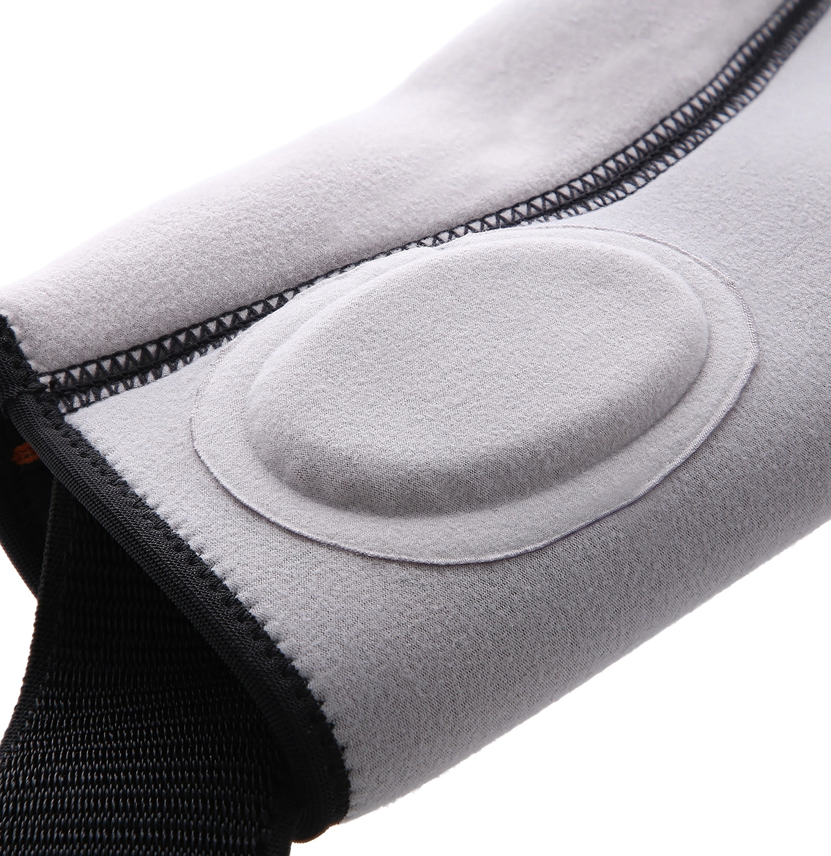 Vgrajena tlačna blazinica nežno masira prizadeto mesto, spodbuja prekrvavitev in zmanjšuje bolečino tako pri obremenitvi kot v mirovanju.