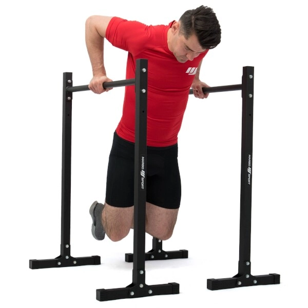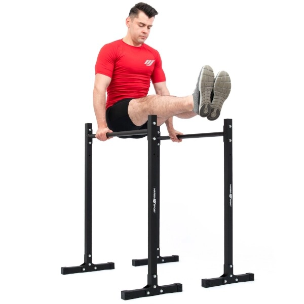 Robustna bradlja za funkcionalni trening iz kakovostnega jekla z nosilnostjo do 140 kg. Ponuja nastavljivo višino ročajev, nedrseče oprijeme in stabilno konstrukcijo za varno izvedbo sklec, dvigov (dipov), L-sitov in drugih vaj z lastno težo.