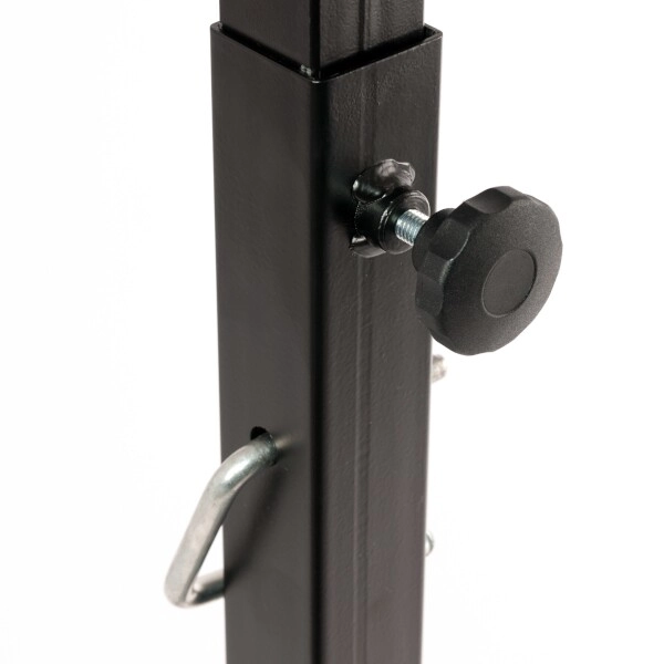 Praktična 7-stopenjska regulacija z varovalnimi zatiči hitro prilagodi stojala za različne vaje in višino vadečega.