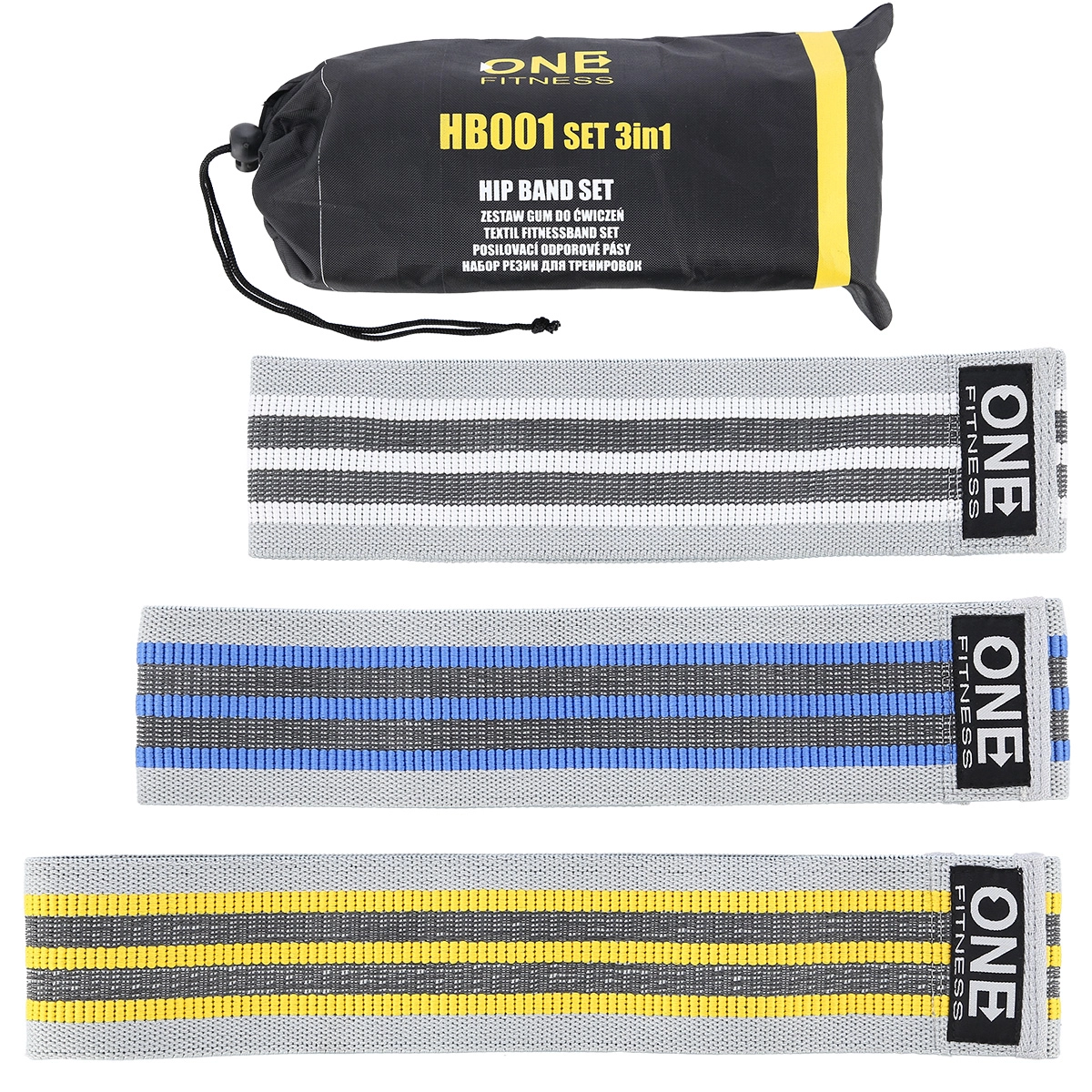 Komplet hip bandov ONE Fitness 3v1 je nepogrešljiv pripomoček za aktivacijo in učvrstitev glutealnih mišic, stegen in kolkov. Tekstilna izvedba z dodatkom lateksove preje zagotavlja visoko odpornost proti trganju, prijeten stik s kožo in nedrseč oprijem na oblačilih. Trije po širini enaki, a različno togi trakovi omogočajo postopno napredovanje in natančno ciljanje vaj.
