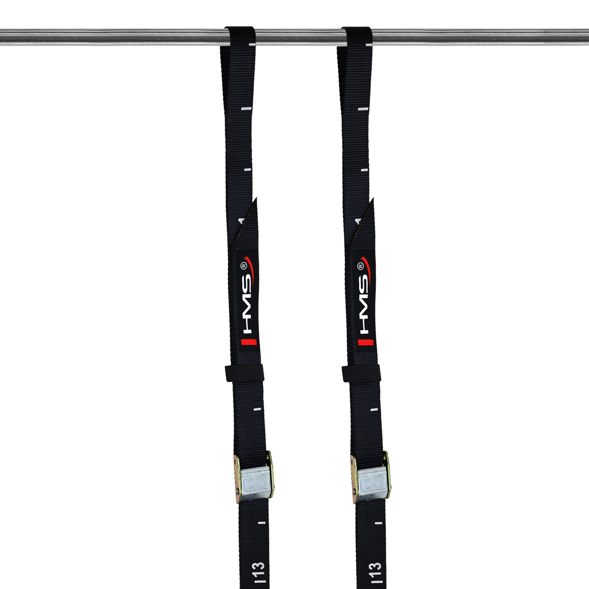 Najlonski trakovi dolžine 440 cm z lestvico na 7,5 cm in kovinskimi zaponkami za varno in ponovljivo nastavitev višine kjerkoli.