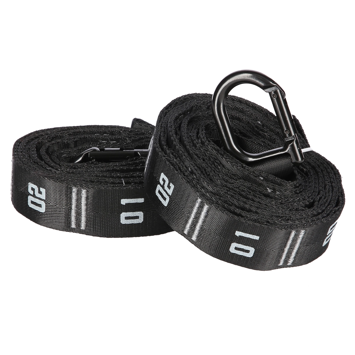 Vzdržljivi najlonski trakovi z jasno lestvico in kovinskimi karabinami omogočajo natančno, ponovljivo nastavitev višine obeh obročev brez dolgotrajnega merjenja.