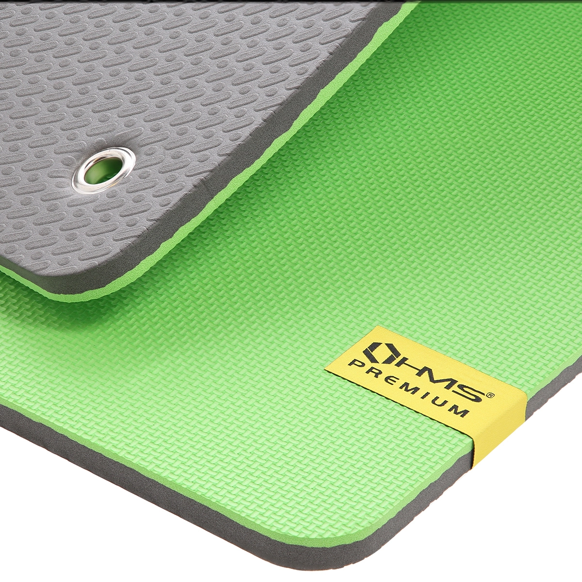 Podloga HMS Premium MFK08 v zeleno‑sivi barvi je zasnovana za vsakodnevno vadbo z poudarkom na udobju in higieni. Dvoslojna konstrukcija iz TPE (10 mm) in EVA (5 mm) prinaša mehke pristope, zanesljivo blaženje udarcev ter stabilno oporo za sklepe in hrbtenico. Teksturirana površina povečuje oprijem in samozavest v položajih ter dinamičnih vajah.