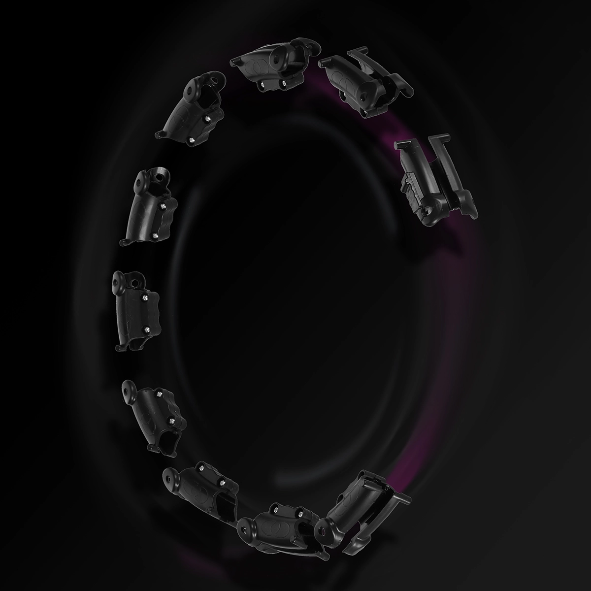 26 medsebojno povezanih segmentov omogoča hitro prilagoditev notranjega premera 20–42 cm za obseg pasu 60–126 cm. Obroč trdno stoji in med vrtenjem ne pade.