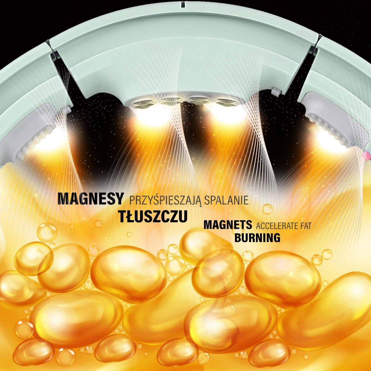Notranji masažni gumbi na vzmeteh blažijo vibracije in hkrati masirajo predel pasu za boljšo prekrvavitev ter podporo limfnemu sistemu. Poseben del z 8 negativno polariziranimi magneti pomaga pri stimulaciji in pospešitvi presnove. Vgrajeni LCD števec prikazuje čas treninga, porabljene kalorije, hitrost vrtenja in skupno število obratov – idealno za spremljanje napredka.