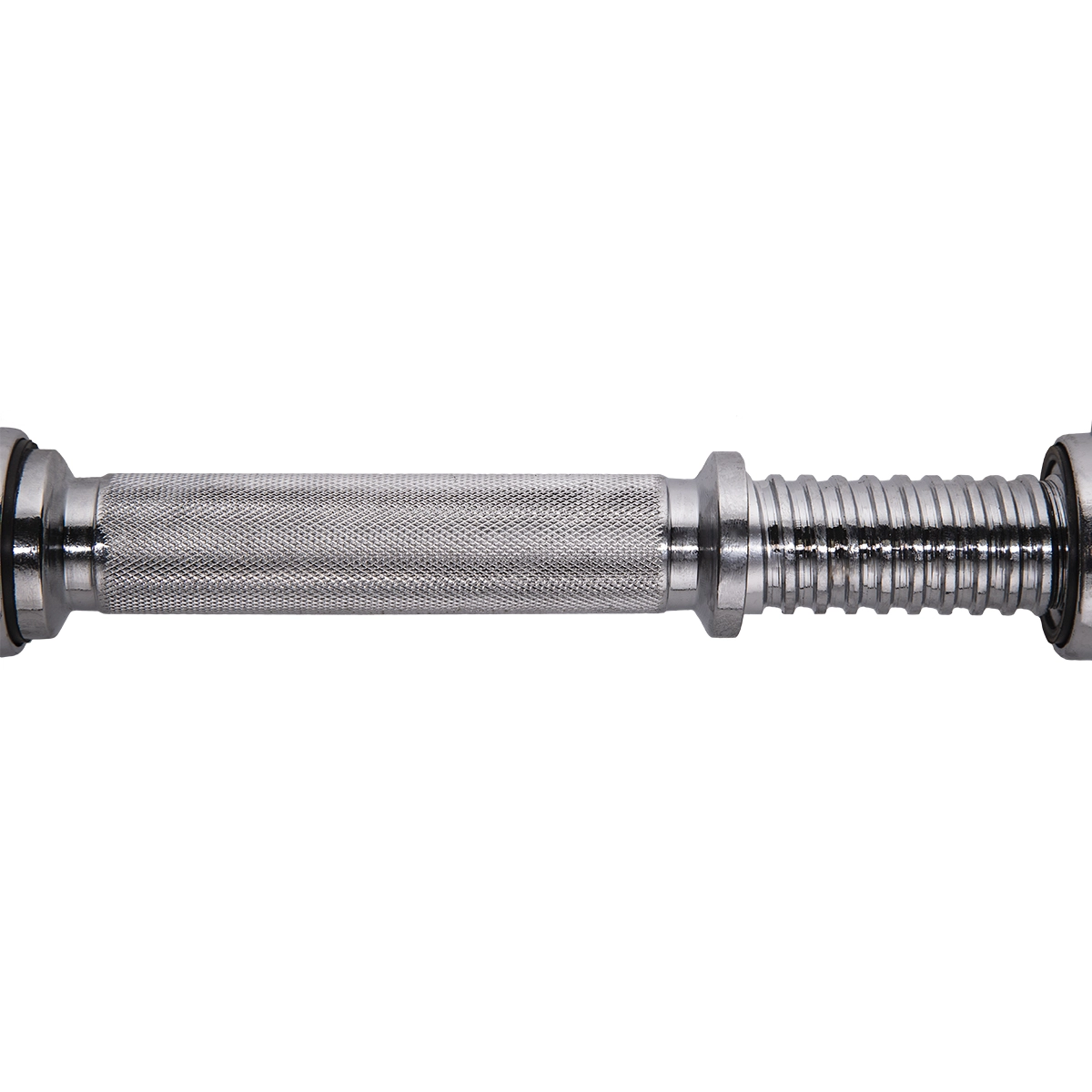 Kaljeno jeklo zagotavlja visoko nosilnost in odpornost, medtem ko kromirana površina ščiti pred korozijo in obrabo pri vsakodnevnem treningu.
