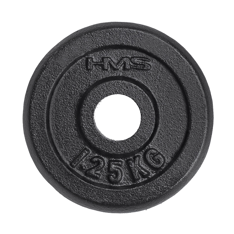 Jasna reliefna oznaka HMS in 1,25 kg omogoča hitro orientacijo pri nalaganju bremen in učinkovito napredovanje vadbe.