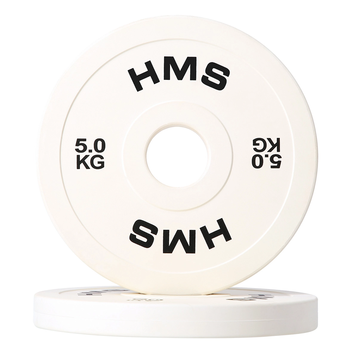 Velika, dobro vidna oznaka 5,0 kg ter odprtina 51 mm za enostavno namestitev na vse olimpijske osi.