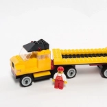 Zgradite rumeno delovno vozilo s krakom in figurico gradbinca – idealno za prizore z gradbišča in razvoj domišljije.