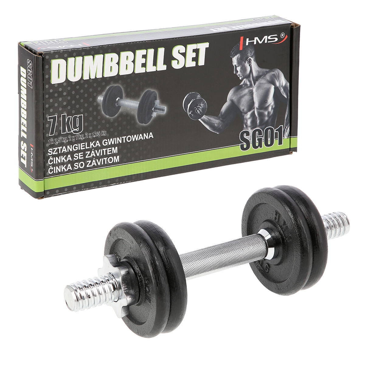 Utež HMS SG01 ponuja zanesljivo konstrukcijo za vadbo moči rok, ramen in prsnega koša. Navojni konci z zvezdastimi maticami in gumijastim trakom držijo kolute trdno na mestu, zato se lahko osredotočite na izvedbo. Narebren (knurl) ročaj zagotavlja zanesljiv oprijem tudi pri intenzivni vadbi.