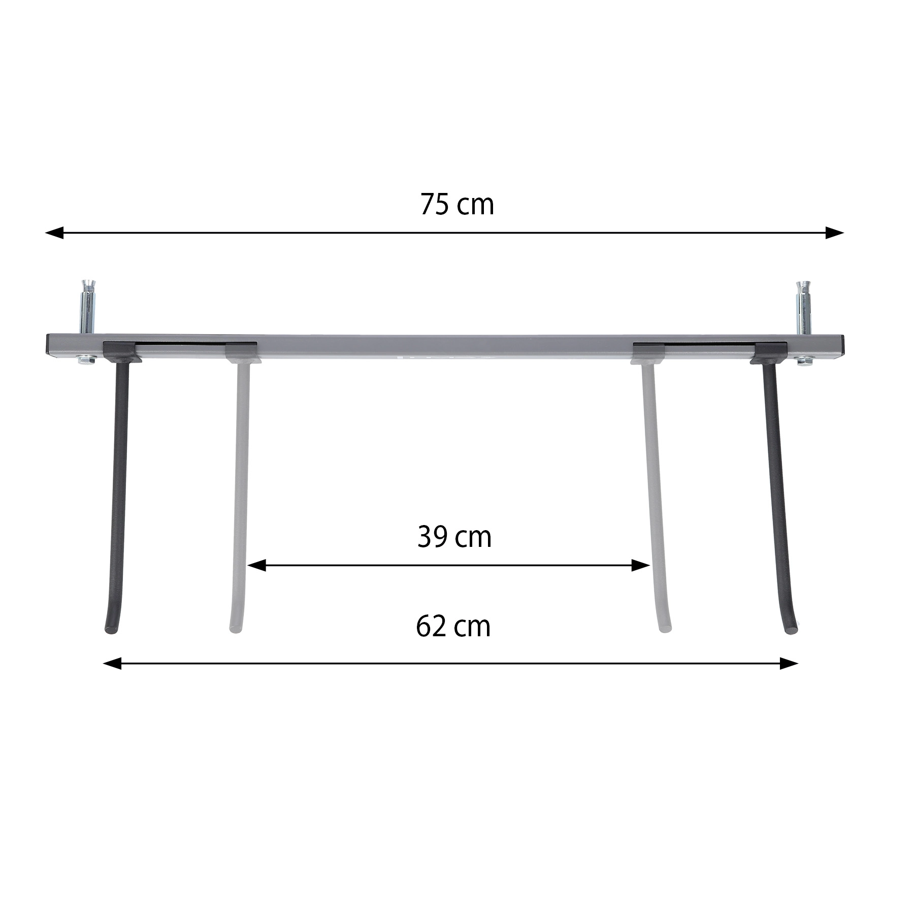 Del paketa sta 2 jekleni sidri za namestitev v polno, betonsko zidanje. Montaža je hitra, nosilec pa trdno stoji na mestu.