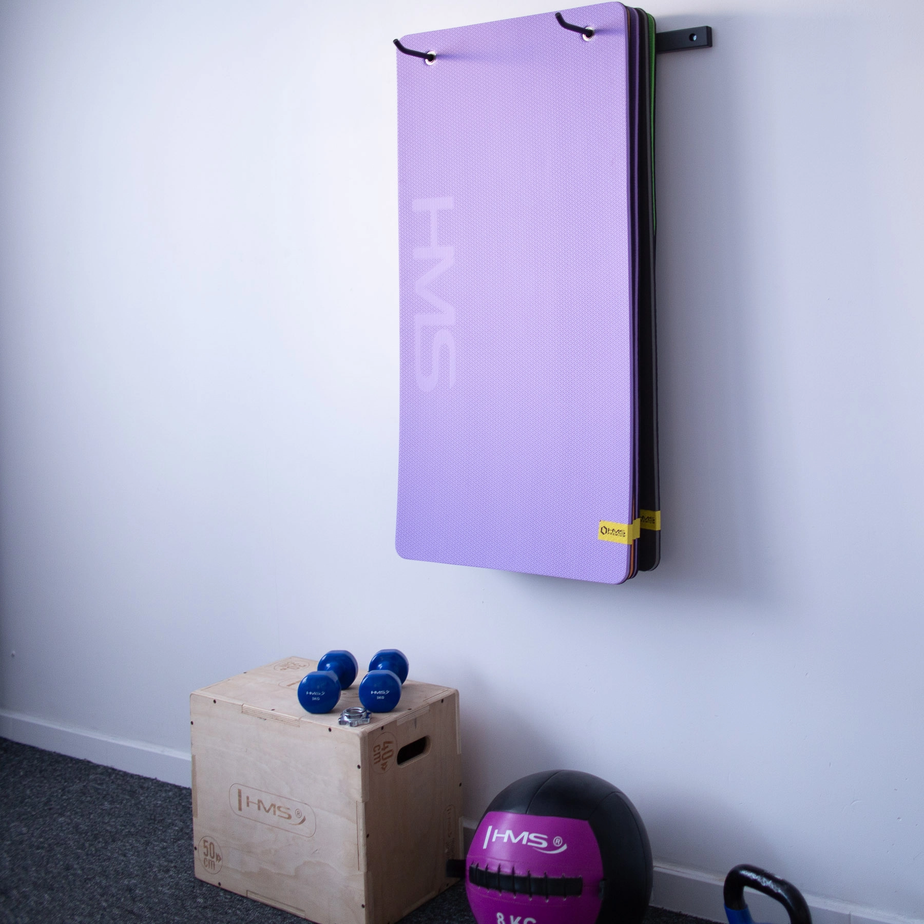 Stenski nosilec za podloge HMS STR30 drži podloge stran od tal, prihrani prostor in zagotavlja red v telovadnici, studiu ali pisarni. Odporna jeklena konstrukcija in premišljeni razmiki kljuk (39–62 cm) omogočajo udobno obešanje različnih vrst podlog z ušesi.