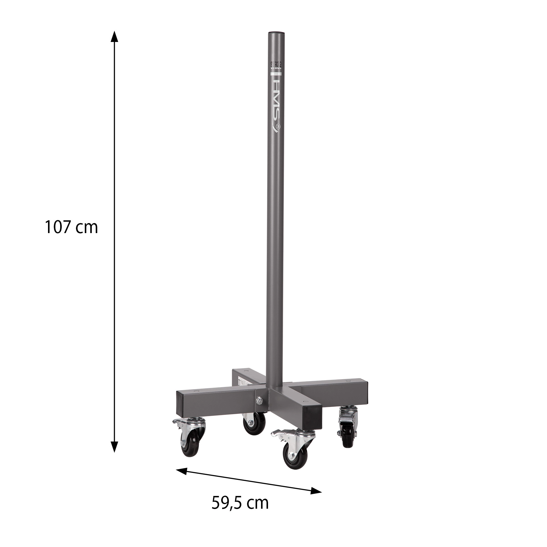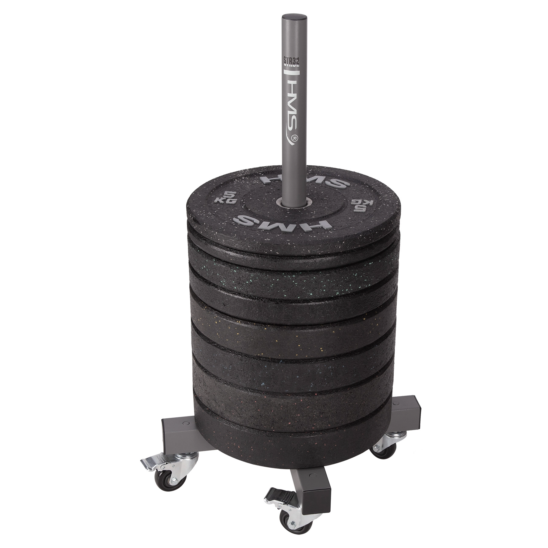 HMS STR32 je mobilno stojalo za olimpijske plošče, zasnovano za hitro organizacijo uteži ter čist, varen vadbeni prostor. Jeklena konstrukcija s centralno palico (Ø 50 mm) hkrati sprejme več plošč, z zaklepnimi kolesi pa ga zlahka premaknete natančno tja, kjer ga potrebujete.