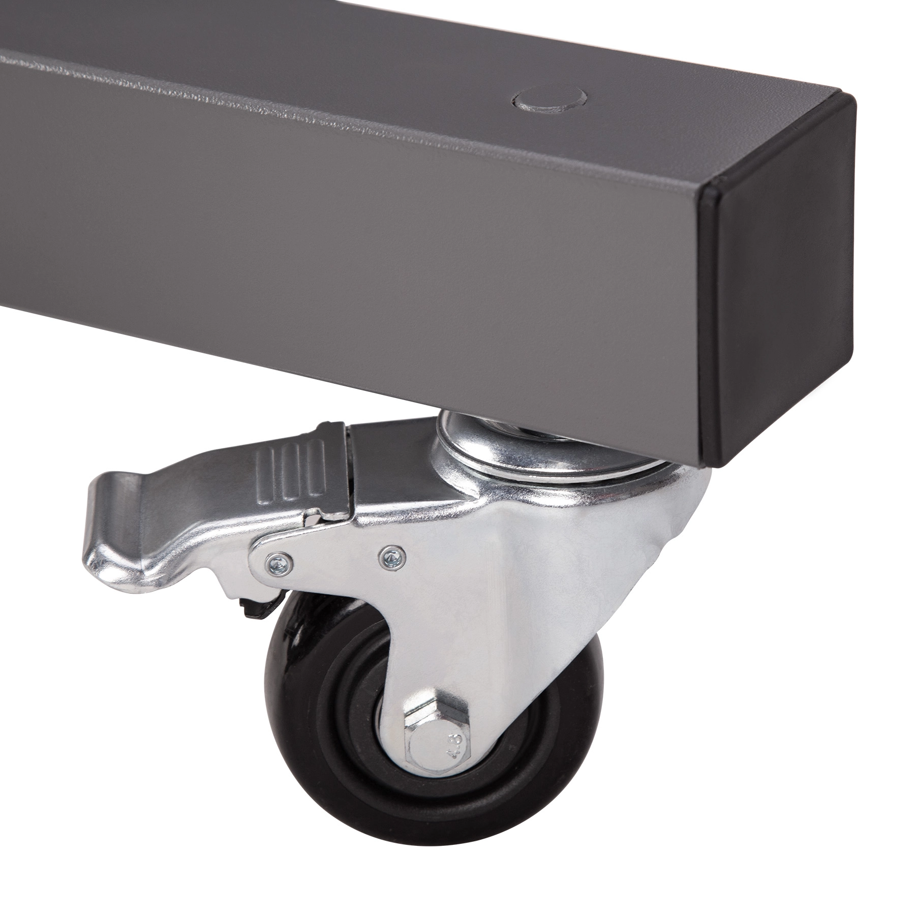Štiri vrtljiva kolesa z nožnimi zavorami omogočajo hiter premik stojala in njegovo varno fiksiranje točno tam, kjer potrebujete vaditi.