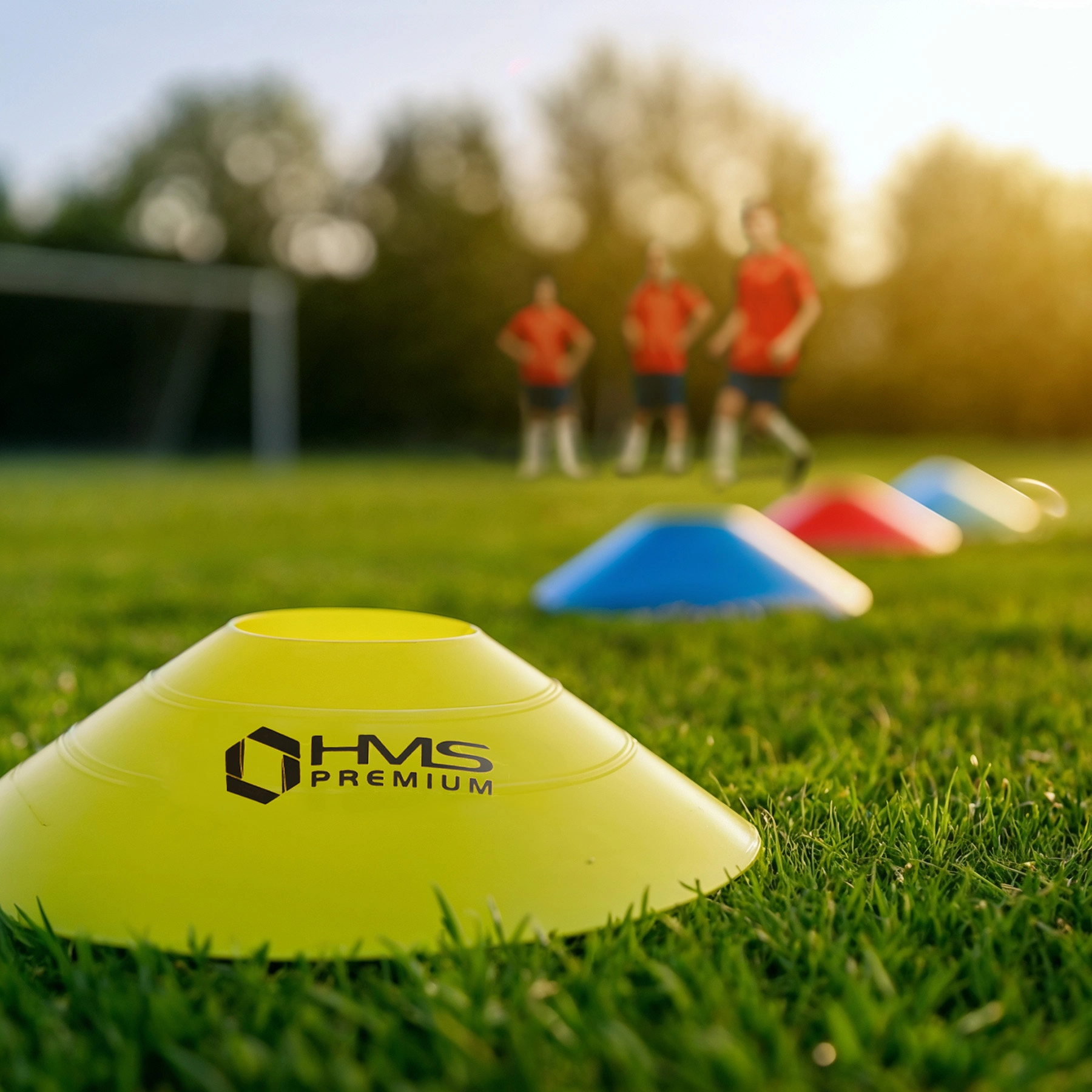 Komplet označevalnih stožcev HMS PREMIUM je idealen za nogomet, atletiko, fitnes in šolski šport. Zaradi trpežnega mehčanega PVC so stožci odporni proti pohodnim obremenitvam in ohranjajo obliko tudi pri intenzivni uporabi. Barvna izvedba poveča vidnost in pomaga pregledno označiti cone, proge ali vadbena postajališča.