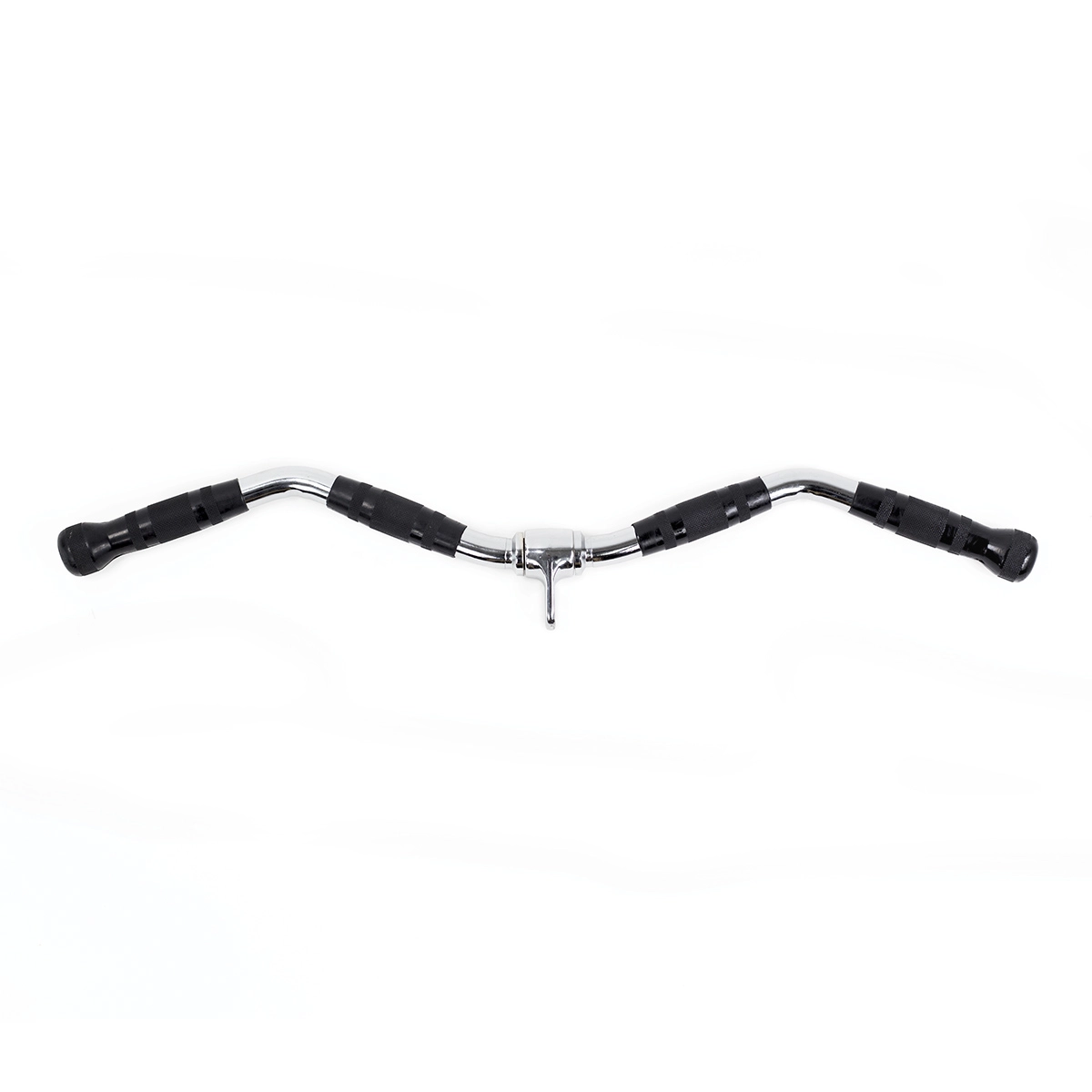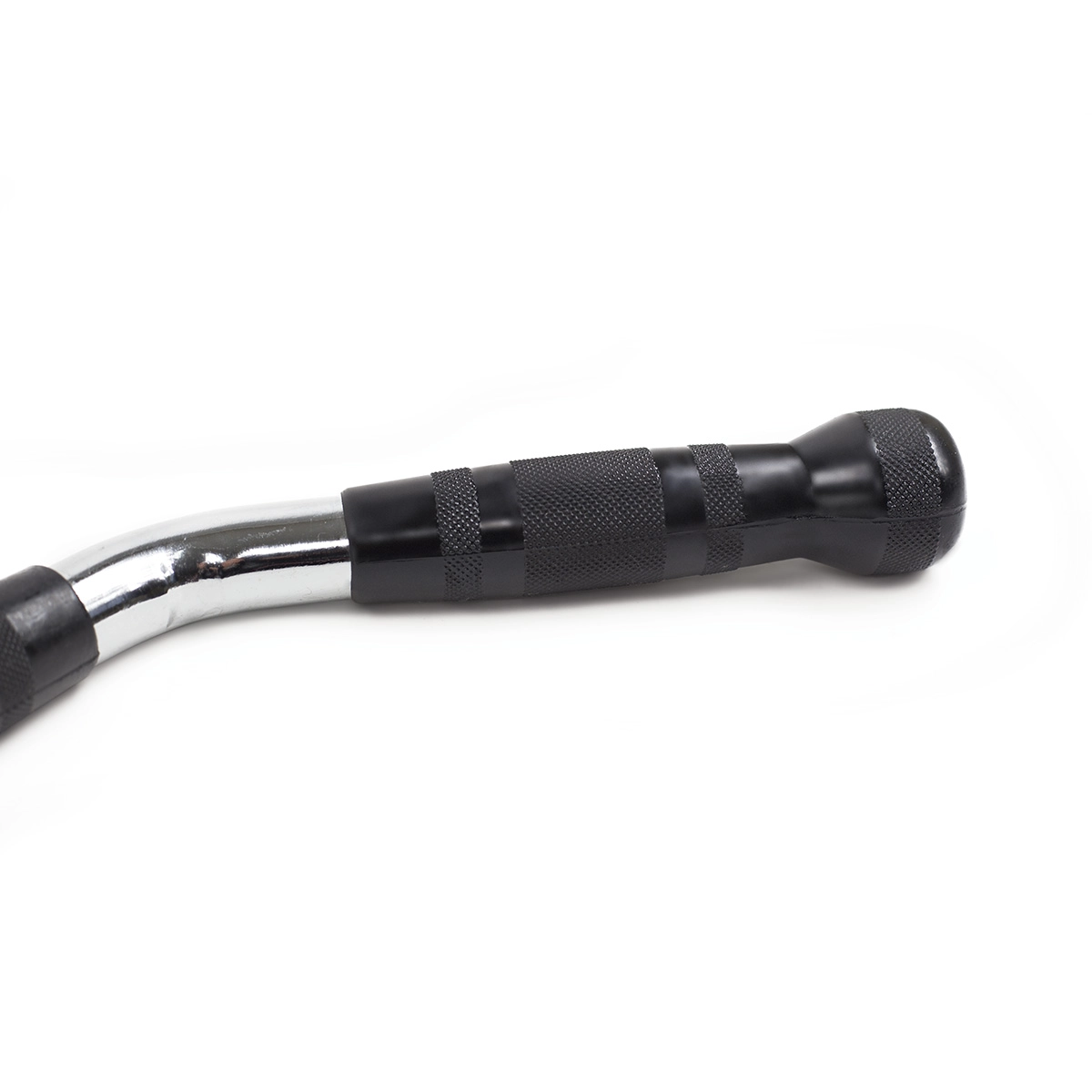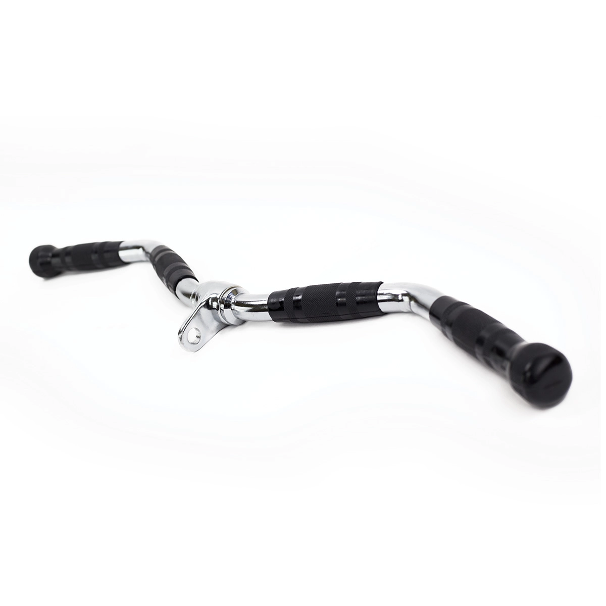 Ergonomsko oblikovan zavoj zmanjšuje napetost v zapestjih in omogoča naravno trajektorijo gibanja. Kakovinska izdelava z vrtečim očesom zagotavlja gladko priključitev na večino vadbenih stolpov in kabelskih škripcev. Idealno za domače in klubske fitnese, kjer so zahtevani zanesljivost, udobje in vsestranskost.