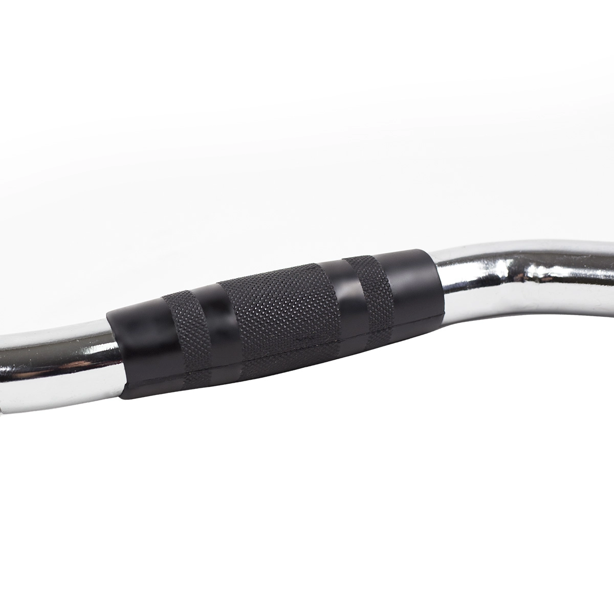 Ukrivljena oblika zmanjšuje pritisk na zapestja in podpira pravilno tehniko pri pritegih, vlečenju na škripcu in potiskih za tricepse.
