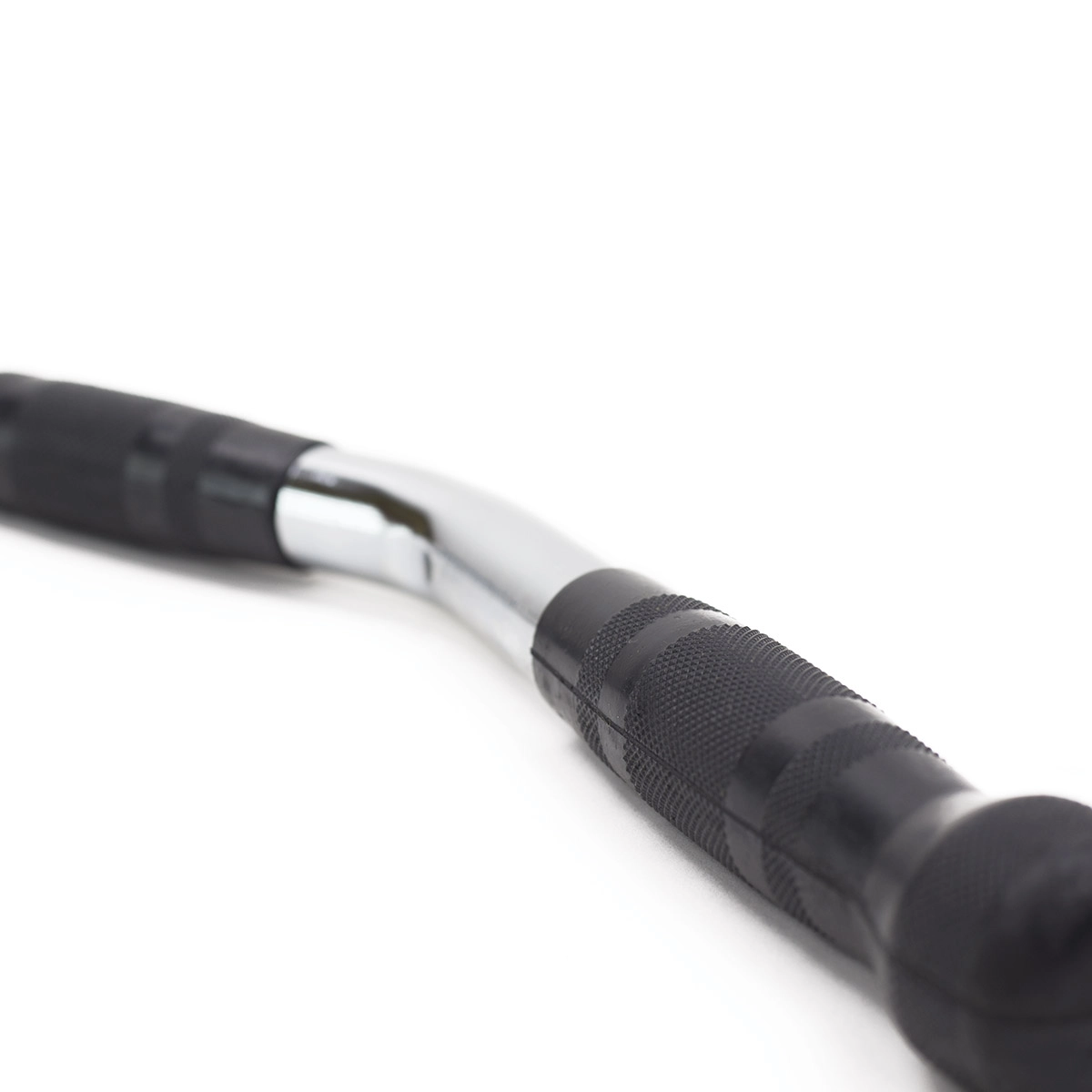 Razpon prijemov od ozkega do ekstra širokega vam omogoča ciljanje različnih delov hrbtnih mišic (latissimus, srednji hrbet, spodnji trapez) in nadlahti. Nedrseči ročaji z večjim premerom izboljšujejo stabilnost in zmanjšujejo utrujenost podlakti, zato boste opravili daljše serije z boljšo tehniko.