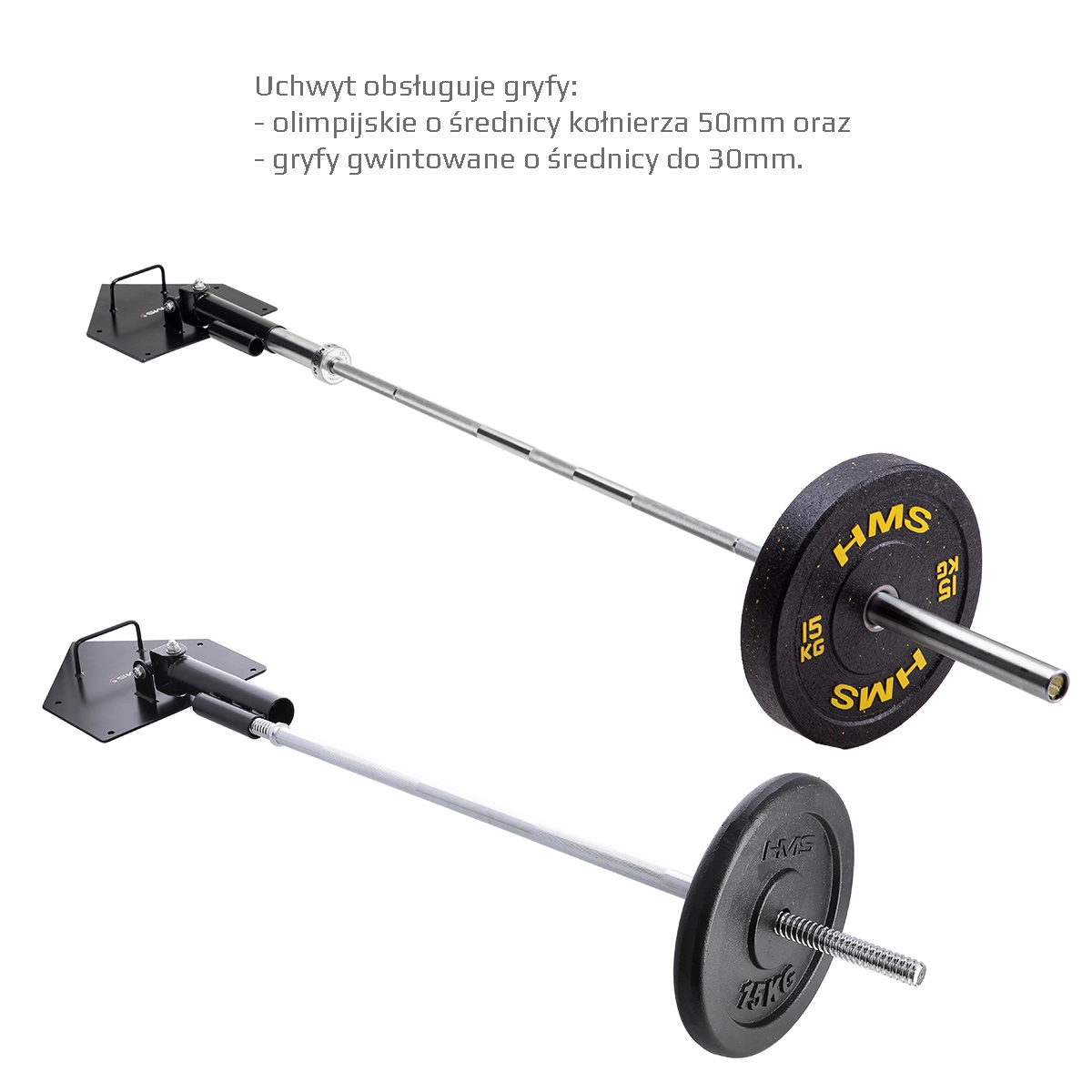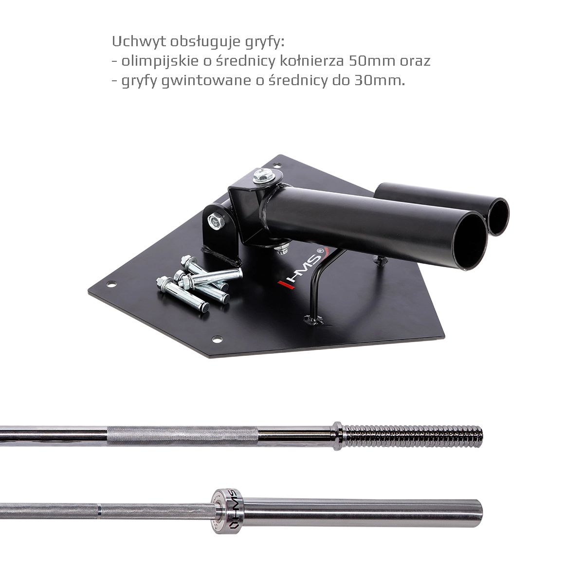 HMS UCG01 je zanesljiv stenski/talni tečajni nosilec za olimpijsko in standardno palico, ki razširi vaše možnosti za trening moči in kondicije. Dvojni tečaj omogoča gladko in varno vodenje gibanja po polkrožni ploskvi – idealno za potiske, veslanja, počepi z rotacijo, landmine press ali antirotacijske vaje. Prosti konec palice preprosto obtežite s koluti po potrebi.